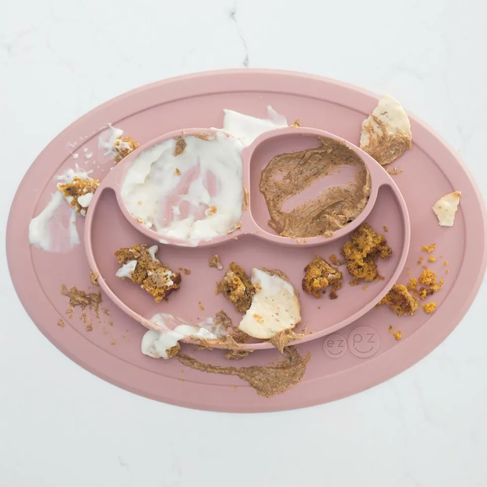 Produceret af 100% ren silikone af højeste standart. Fri for BPA, Phthalater og PVC. Dækkeservietten super sig helt fast til bordet, så barnet ikke kan tippe eller vælte tallerknen.