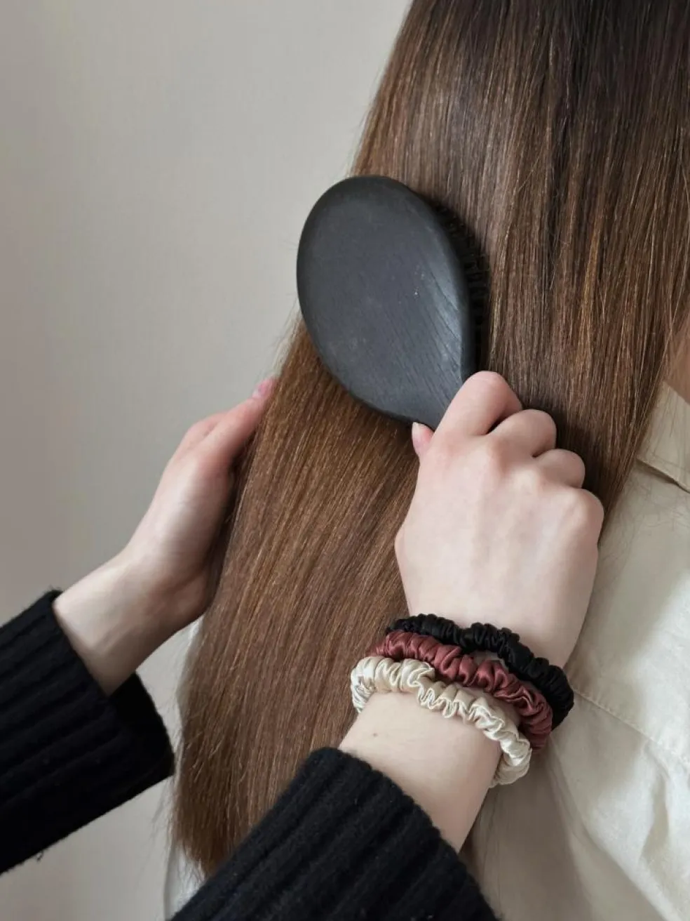 Med sin glatte overflade hverken slider, filtre, knækker eller giver den mærker i håret.