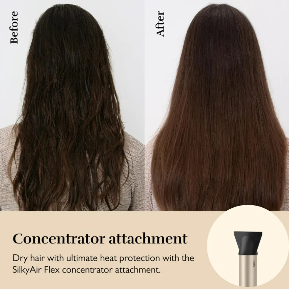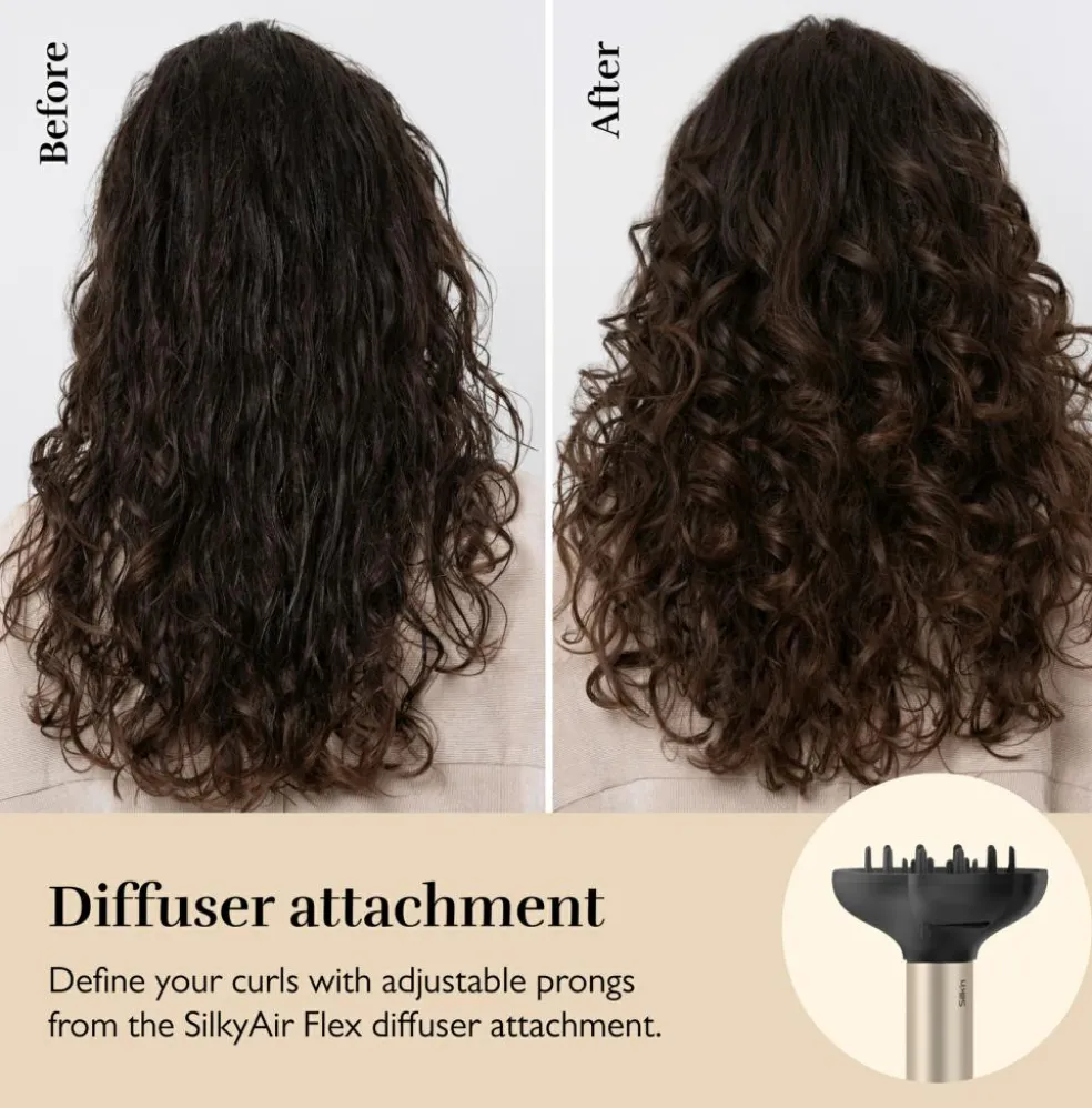 SilkyAir Flex inkluderer 2 vedhæftninger til at skabe krøller til både venstre og højre side.