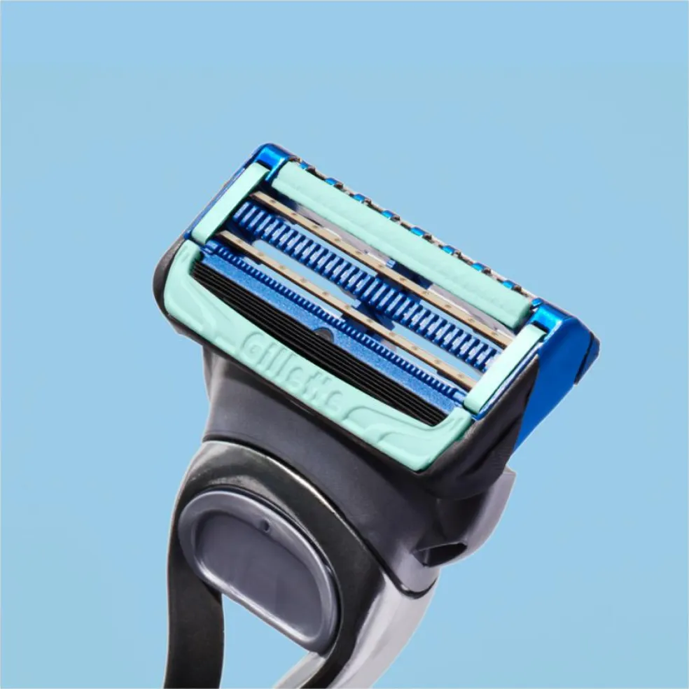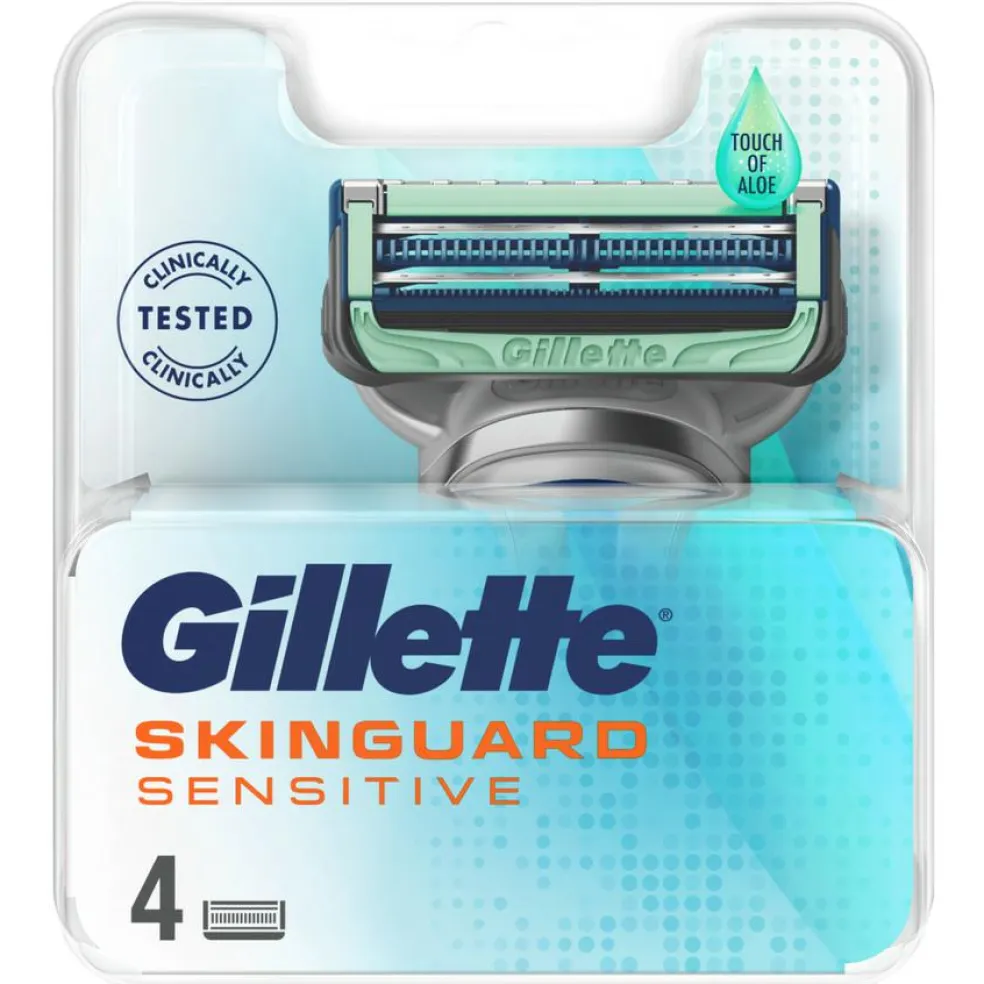 Gillette SkinGuard Sensitive-barberblade til mænd er de første med unik SkinGuard mellem bladene til at barbere hår og beskytte hud. SkinGuard reducerer bladets kontakt med huden. Hver blad-refill er desuden forsynet med to optimalt placerede LCF-blade (low cutting force), som minimerer trækken og hiven, samt smøring før og efter bladene for at minimere friktion og beskytte huden mod irritation.