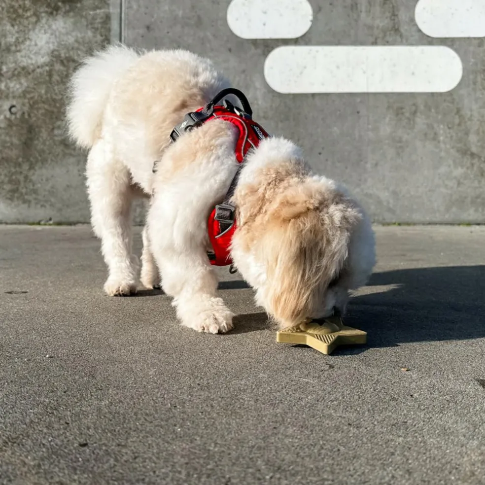 Alle hvalpe og mindre hunde, især hunde med korte snuder som fx Fransk Bulldog, kan holdes beskæftiget i lang tid med dette skønne legetøj.