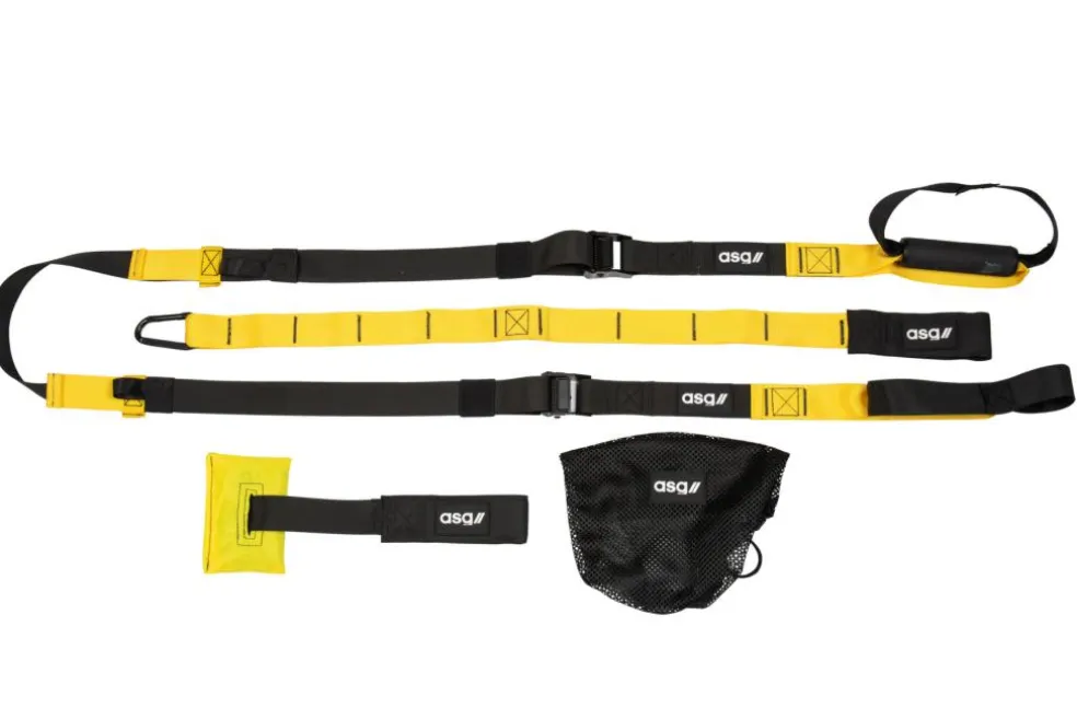 P1 hovedbælte, ekstra bælte, høj-styrke flad krog, mesh taske, dørlås og quickstart og træningsguide.