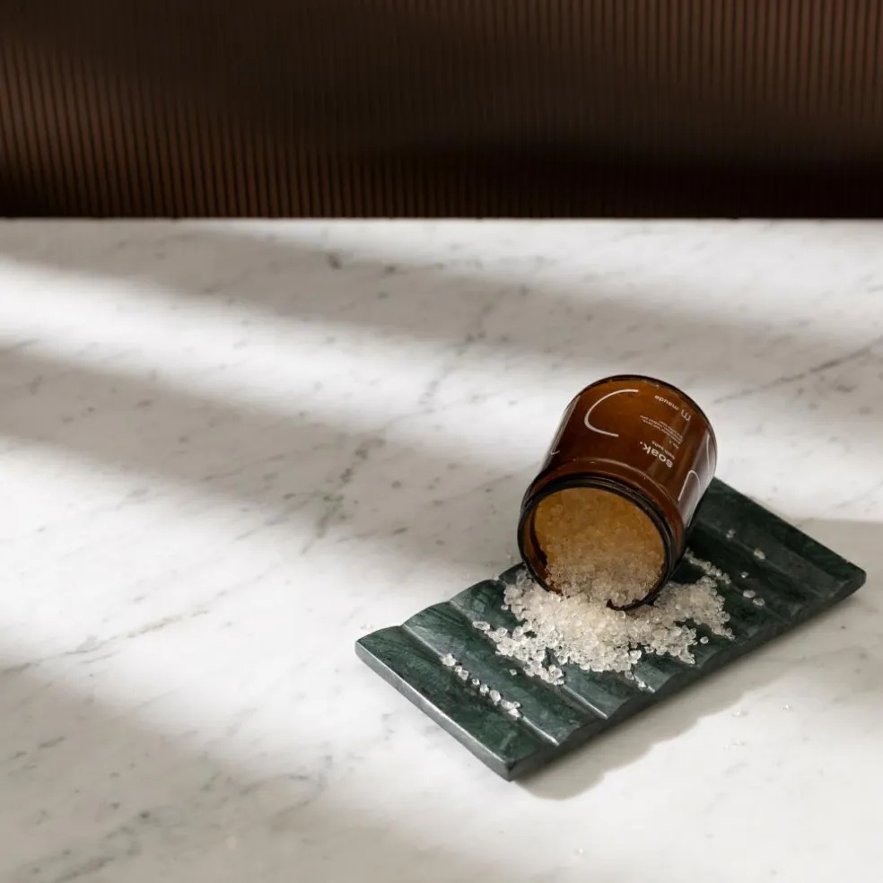 Fyldt med håndhøstede saltkrystaller fra det sydlige Døde Hav, soak indeholder nærende vitaminer og mineraler som magnesium, kalium, svovl, zink og mere.