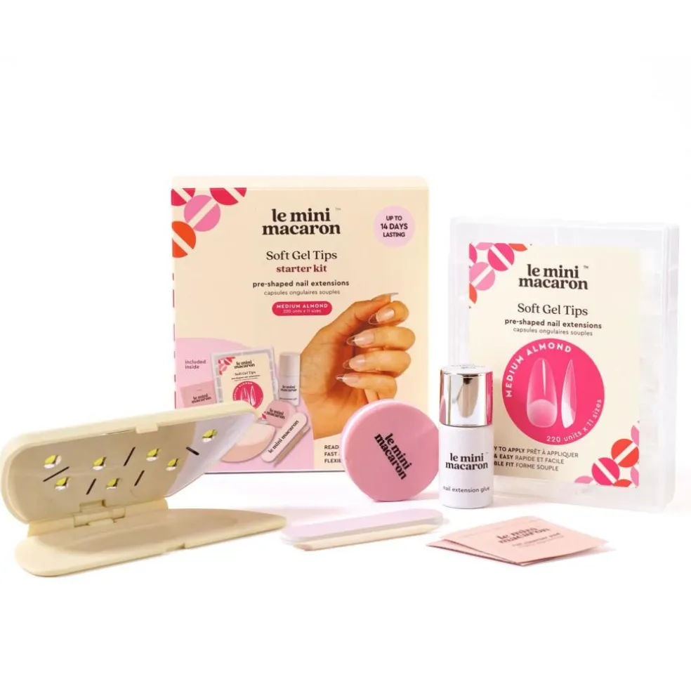 Skab dine egne negleforlængelser med et flot og professionelt resultat. Le Mini Macaron Soft Gel Tips Starter Kit indeholder alt, du skal bruge til at forlænge dine negle med fleksible soft gel tipper og en stærk, HEMA-fri gel lim. Kittet dækker forberedelse, hærdning, formning og finish – og med den medfølgende Demi LED-lampe (9W) kan du nemt hærde limen, mens du bruger begge hænder under lampen.