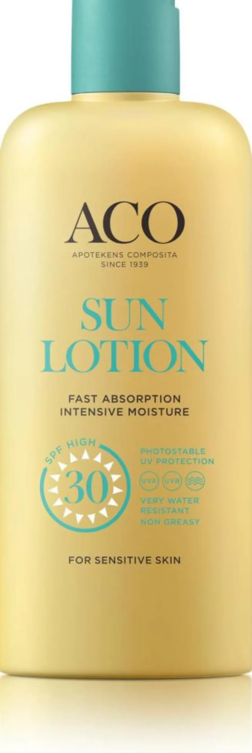 ACO Sun Lotion SPF30 er til dig, der ønsker solbeskyttelse, der passer til alle hudtyper og giver øjeblikkelig beskyttelse mod solens UVA- og UVB-stråler.