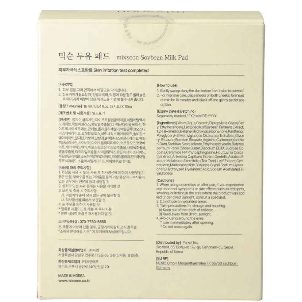 Mixsoon Soybean Milk Pad er en sheet maske, der indeholder Lactobacillus/Soybean Ferment Extract for at give intensiv næring til tør hud.