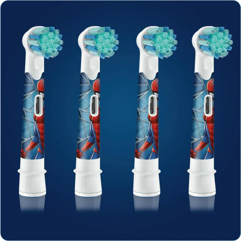 Oral-B Kids 3+ børstehoveder giver børn underholdningen fra Marvel Spiderman med den nænsomme, effektive rengøring fra Oral-B eltandbørsten, der anbefales af tandlæger. De ekstra bløde børstehår og det lille runde hoved er specielt designet til børn og passer til alle eltandbørster fra Oral-B Kids.