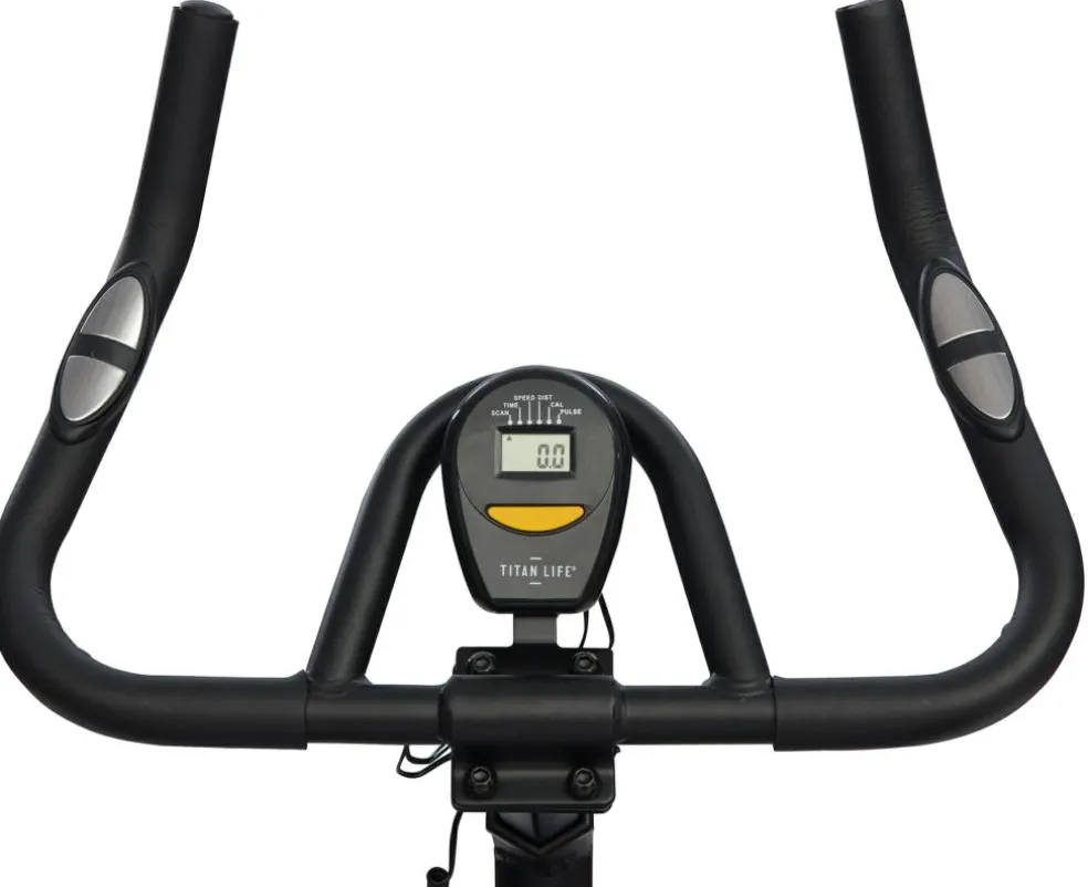 Computer viser de basale informationer: Tid, Hastighed, Distance, Kalorier forbrændt samt en scan funktion.