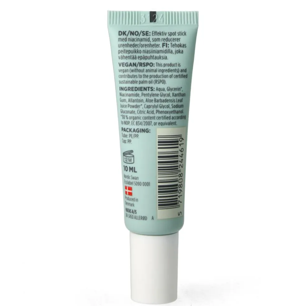 Indholdet af niacinamid mindsker urenheder, talg (sebum) og porestørrelsen. Niacinamid hjælper desuden med at dæmpe rødmen og skabe balance i huden. Økologisk glycerin beskytter, beroliger og modvirker udtørring af huden, mens økologisk aloe vera fugter og plejer huden.
