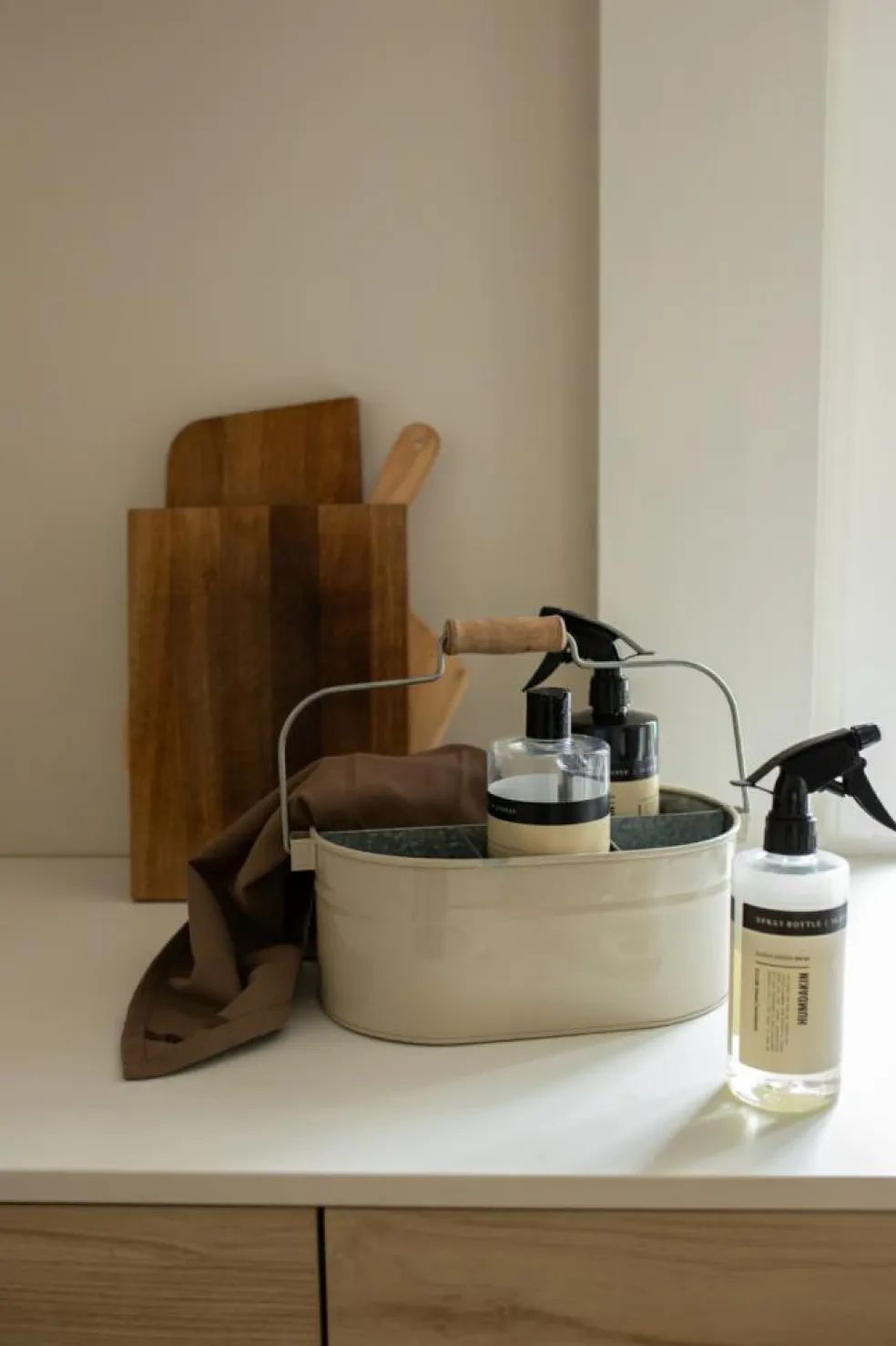 Bland en lille teske Humdakin universalrengøring og lunkent vand i sprayflasken, og du har en nem blanding lige ved hånden til din daglige rengøring af hjemmet. Sprayflasken kan bruges igen igen.