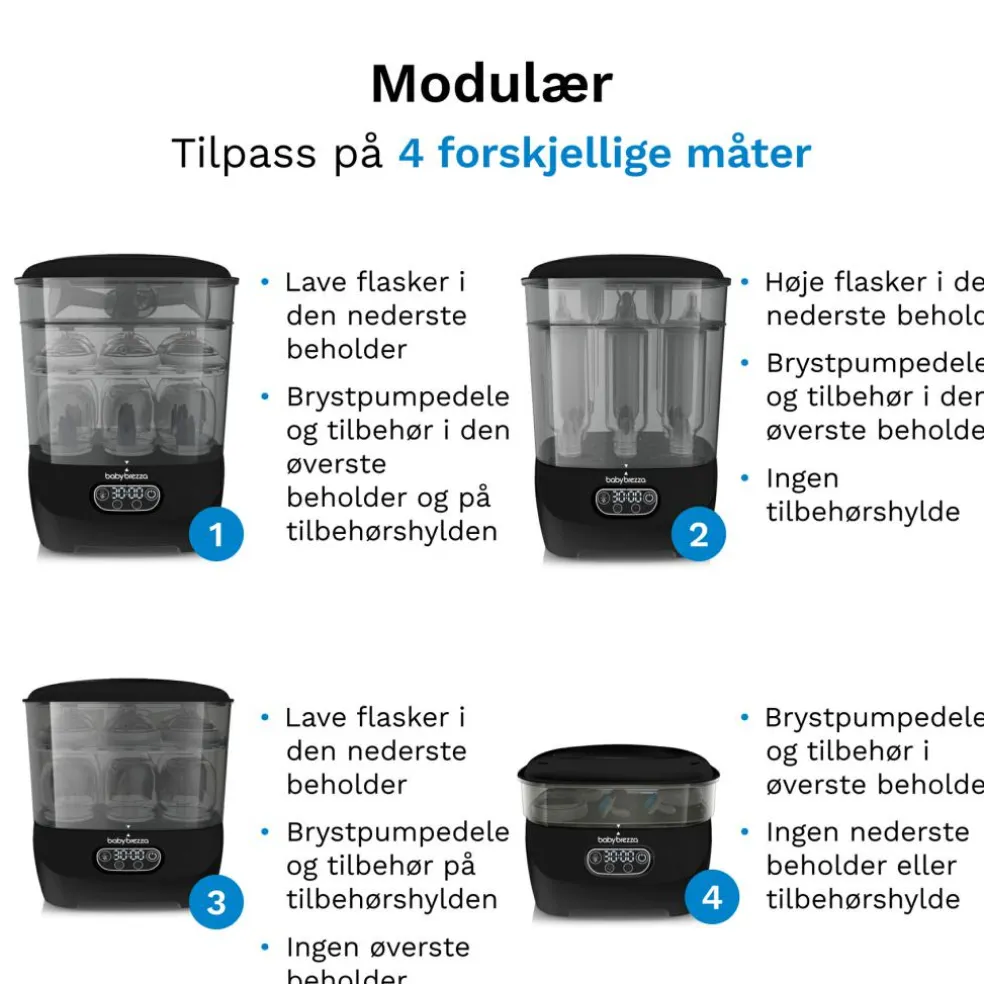Nu kan du sterilisere og tørre flasker og alt tilbehør på en ENKEL måde! BPA-fri. 2 års garanti.