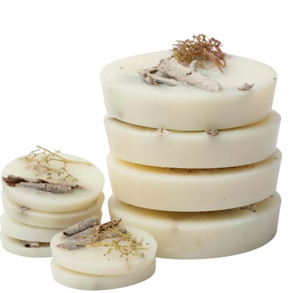 Æsken indeholder i alt 10 duftvoks, 6 stykker, der måler 35 mm og 4 stykker, der måler 60 mm, i alt 124 gram ren aromatisk nydelse. Hver duftvoks er fremstillet af højkvalitets botanisk sojavoks, der giver en ren og langvarig forbrænding. Ingredienserne flyder i den smeltede voks og er en fryd for øjet.