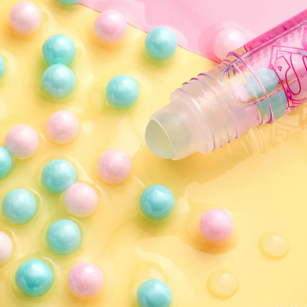 Denne sjove, gennemsigtige læbeolie med rosa og pastelblå sukkerperler giver din skønhedsrutine et legende touch. Rulleapplikatoren glider let over huden, sikrer jævn påføring og efterlader dine læber bløde og fugtige.