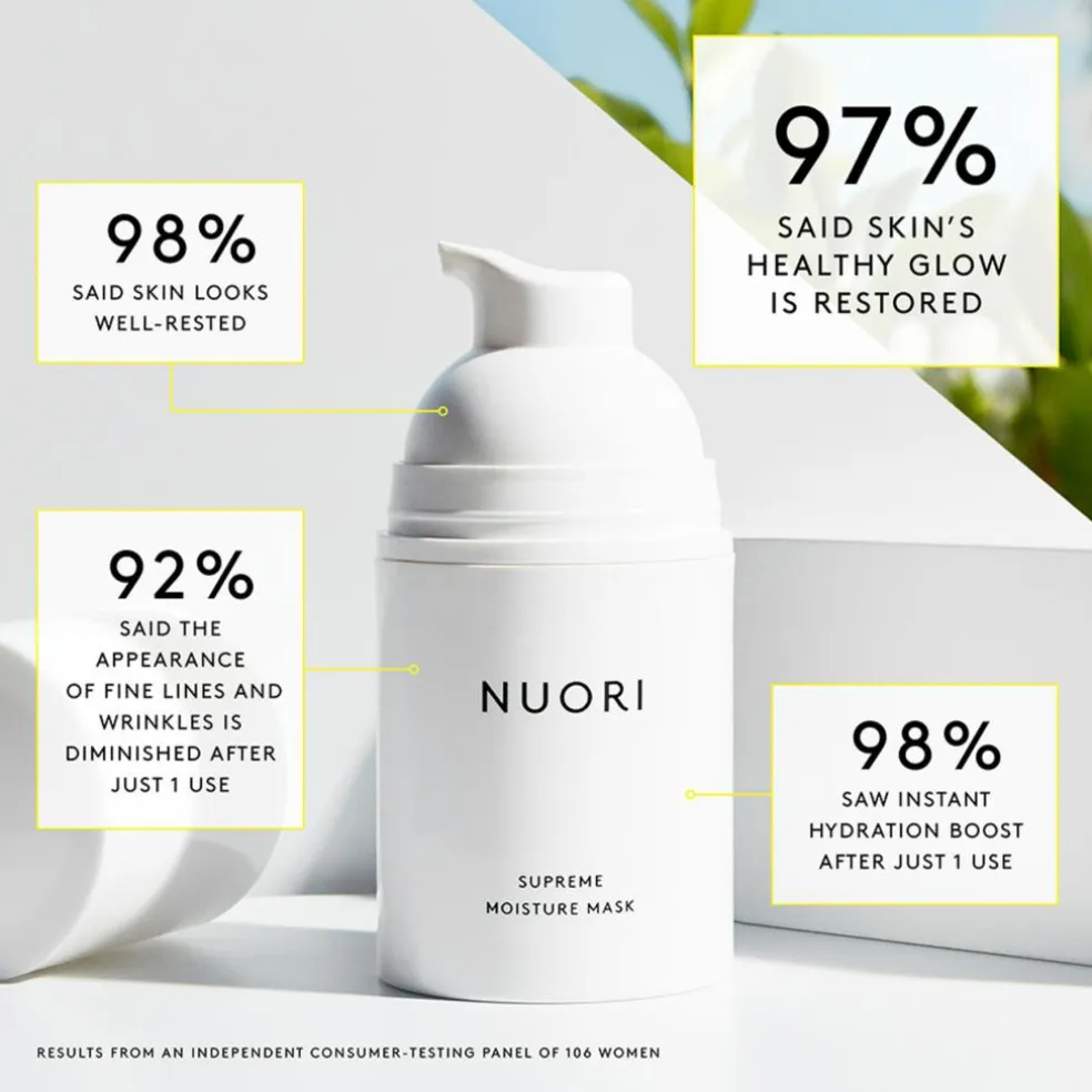 Vindruevand og blomstervand fra økologisk damask rose kombineret med naturlig hyaluronsyre genopretter effektivt hudens fugtbalance, mens plantebaseret squalane og betaine styrker hudens barrierefunktion.