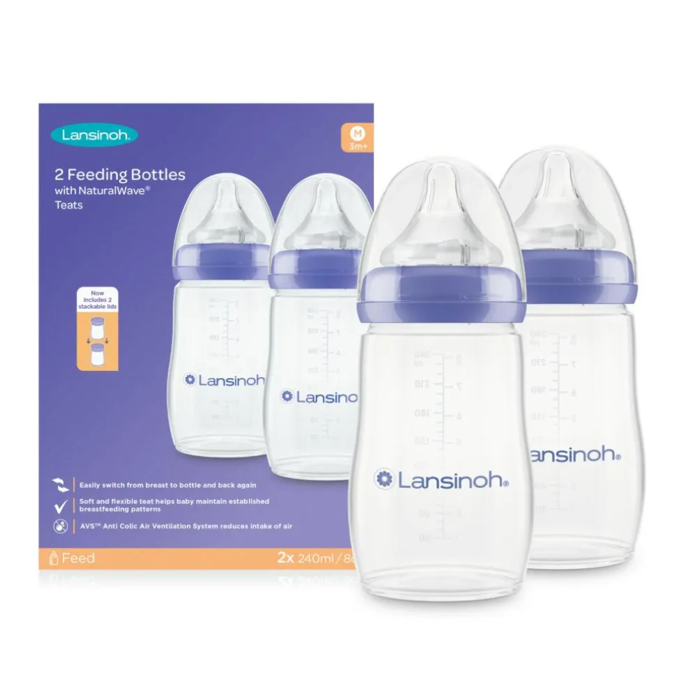 Lansinohs sutteflaske med NaturalWave® sut er specielt designet, så den lille kan nyde din udmalkede modermælk, selv når I er fra hinanden.