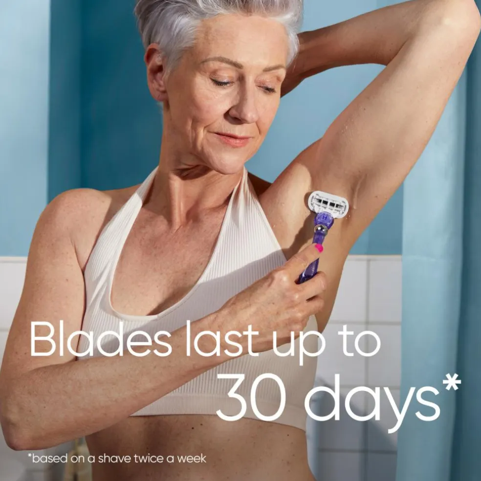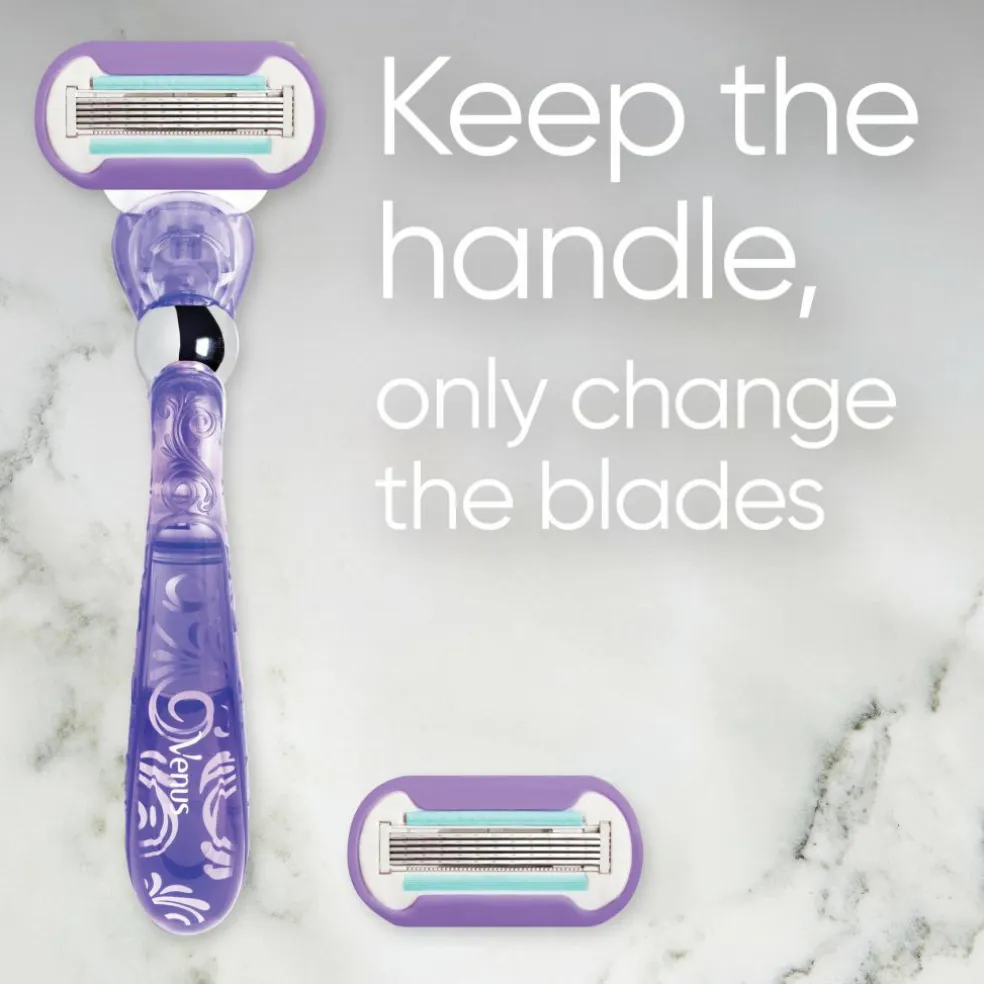 Venus-barberblade til kvinder er skabt efter kvindekroppen. Venus Deluxe Smooth Swirl-barberskrabere til kvinder giver glat hud, der holder i længden. Barberbladene har 5 blade for en supertæt barbering og har indbyget flexiball, der tilpasser sig efter kroppens konturer. Barberbladene skærer håret tættere ved huden, så den holder sig blød og glat længe. Barberbladets vandaktiverede fugtbånd hjælper med at beskytte mod sår og rifter. Alle Venus-barberblade passer til alle Venus-skrabere (undtagen Simply Venus og Venus Pubic Hair and skin). GLATHED, DER HOLDER: skraberen har 5 blade, der giver en ekstra glat barbering, der holder i længden GRUNDIG: de 5 blade og flexiball kombineres i en barbering, der fanger stort set hvert eneste hår DESIGN, DER TILPASSER SIG: skraberens indbyggede flexiball tilpasser sig kroppens konturer, så du får maksimal kontakt med huden under barberingen – selv på mere udfordrende områder som ankler Alle Venus-barberblade passer til alle Venus-skrabere (undtagen Simply Venus og Venus Pubic Hair and skin) HUDBESKYTTELSE: skraberens vandaktiverede fugtbånd smører for at beskytte din hud mod sår, rifter og irritation REN EFFEKTIVITET: skraberens diamantagtigt belagte blade skærer nemt håret tæt på huden, så du får ekstra glat hud Barber rigtigt, ikke mere