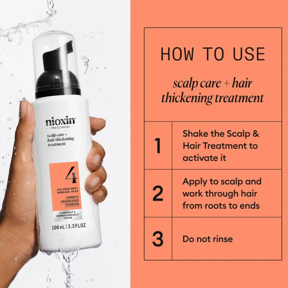 Brug den sammen med Nioxin System 4 Cleanser Shampoo og Nioxin System 4 Conditioner for at få det bedste resultat.