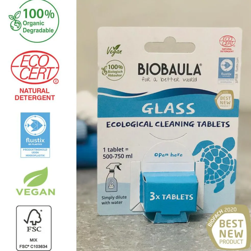 BioBaula økologisk glasrens renser effektivt glas, vinduer og spejlflader uden at efterlade striber – selv ved kraftige belægninger. BioBaula glasrens er pH-neutral og hurtigtørrende og er særlig effektiv mod pollen, fingeraftryk, tandpasta m.v. Spray og tør efter med en tør klud. Efterlader dit hjem skinnende rent.