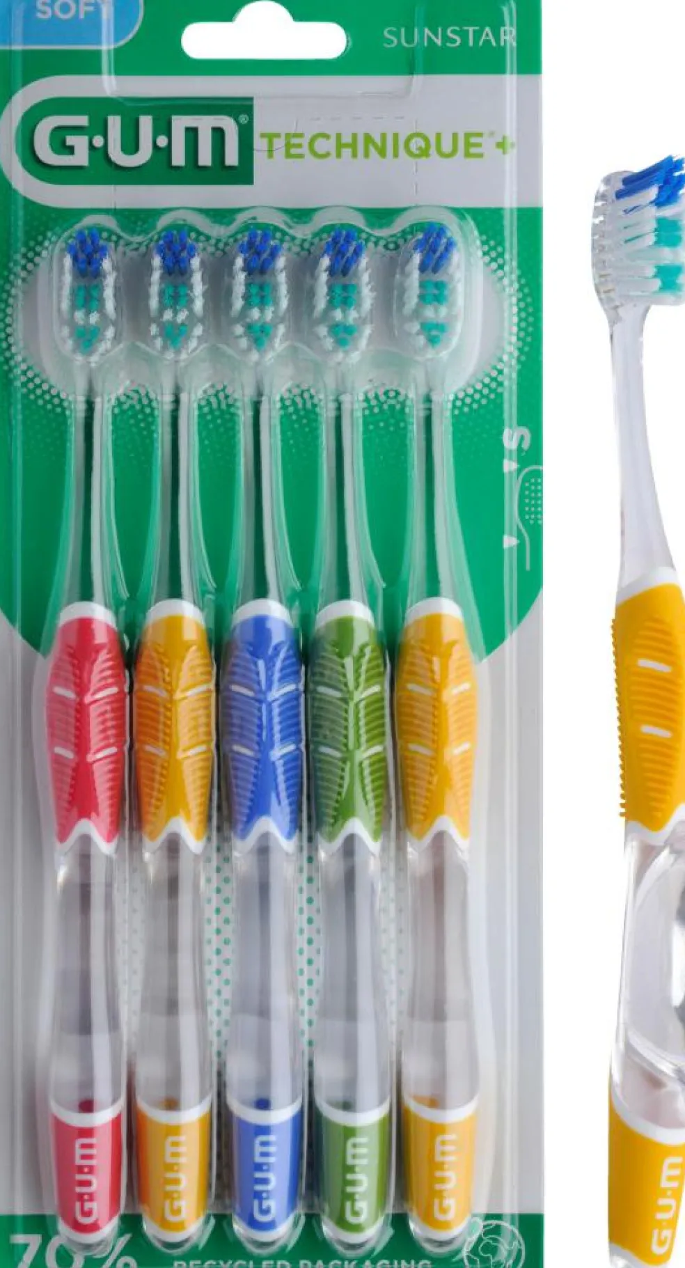 GUM Technique+ tandbørste er en soft voksen tandbørste, med et særlig godt greb, der sikrer dig den optimale børstevinkel, så du få gjort bedre rent langs tandkødsranden. Børsten har også en tip, som er god til at komme ind bag de bagerste tænder. Leveres i assorteret farver.