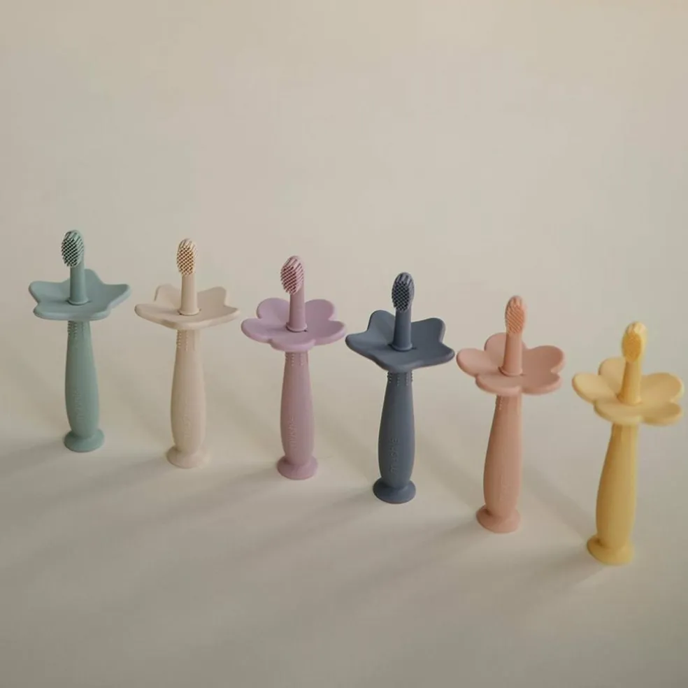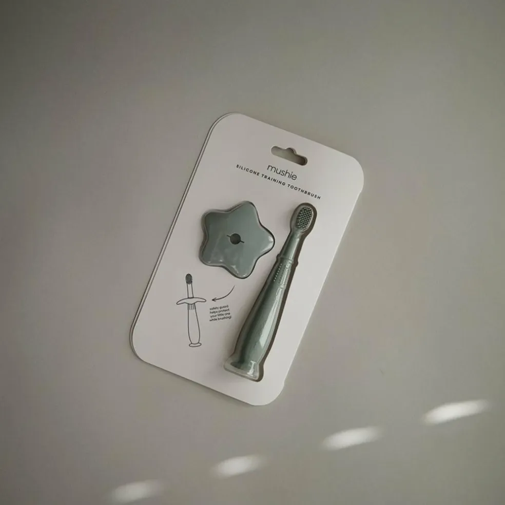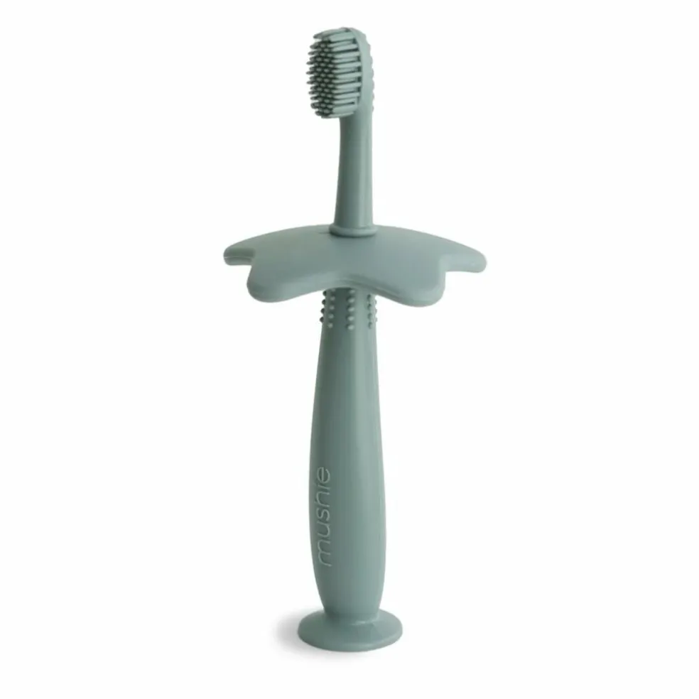 Giv dit barn den bedste start på tandplejen med Mushie trænings tandbørsten, der kombinerer sikkerhed, komfort og effektiv mundhygiejne.