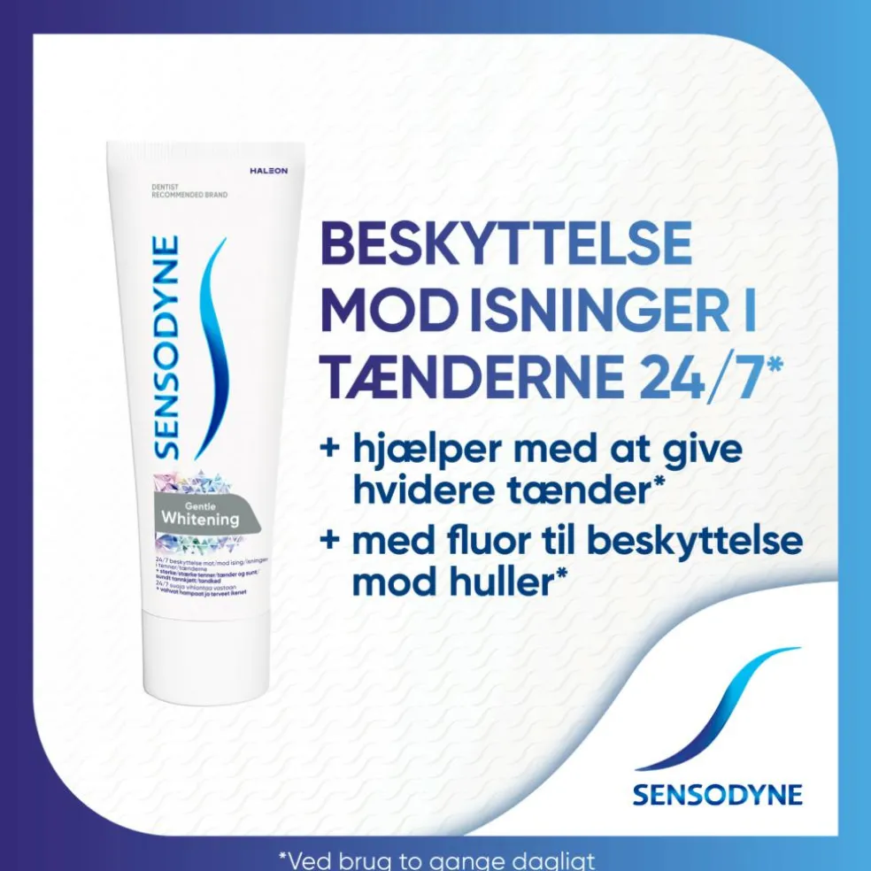 Ved tandbørstning to gange om dagen med Sensodyne Gentle Whitening får du en tandpasta der: