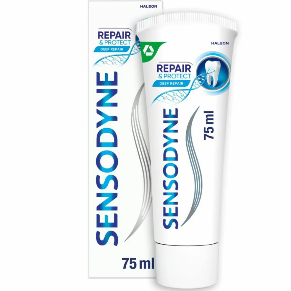 Sensodyne Repair & Protects aktive ingredienser danner et tandlignende, beskyttende lag, som reparerer sårbare områder og beskytter mod isninger og huller i tænderne.