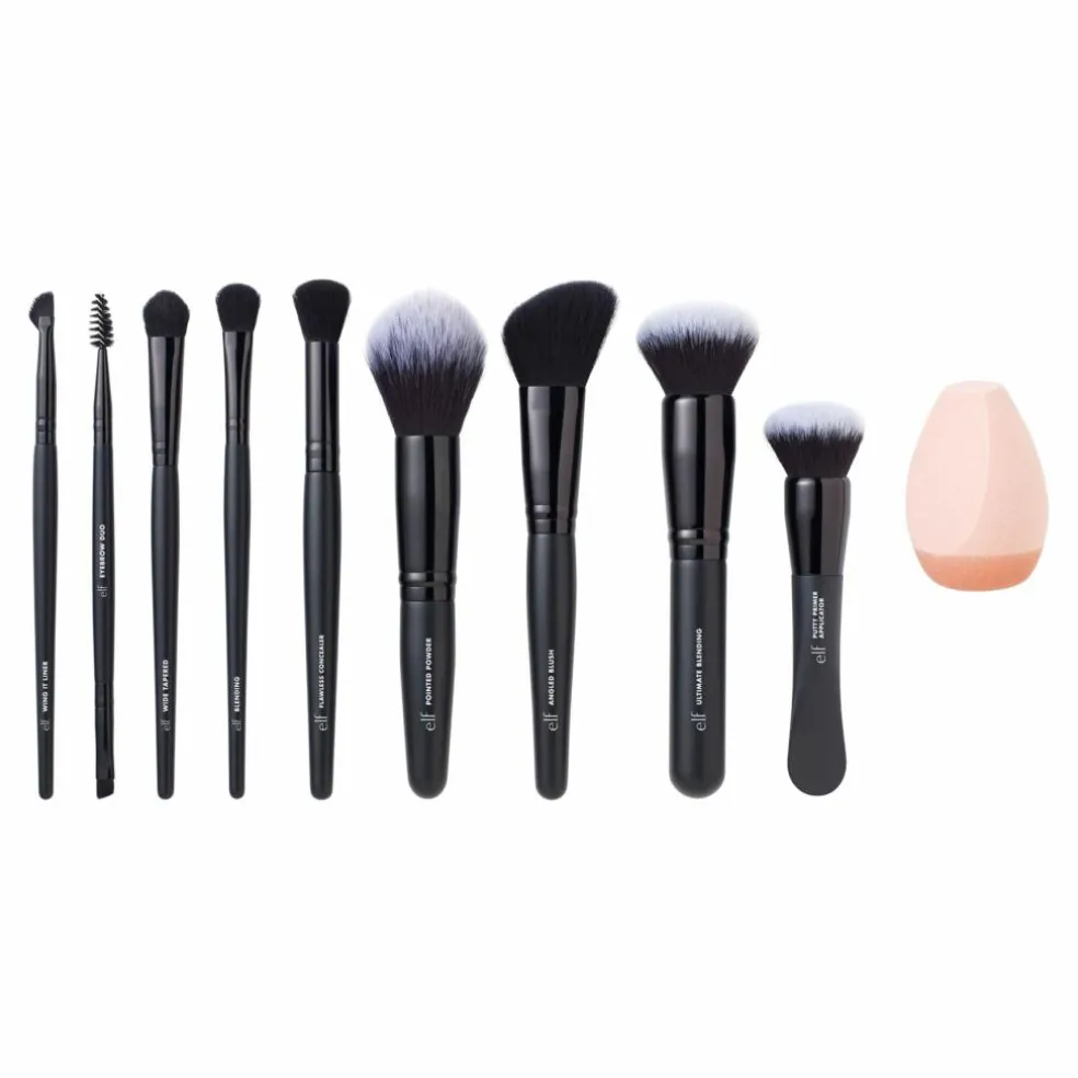 Skab et komplet makeup-look med e.l.f. Cosmetics Ten out of Ten Brush Set. Dette eksklusive sæt indeholder 10 af de mest populære makeupbørster fra e.l.f., designet til at give dig en fejlfri påføring hver gang. Uanset om du ønsker at lægge en smuk hverdagsmakeup eller et mere dramatisk aftenlook, har dette sæt alt, hvad du behøver.