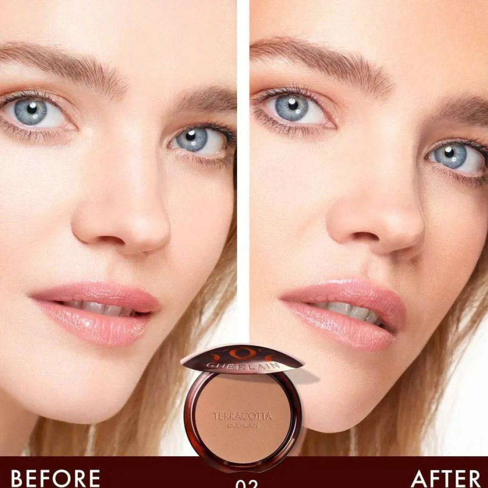 Terracotta Original Bronzing Powder er utroligt let at påføre og giver et smukt jævnt resultat. For at få en naturlig solkysset glød påfører du produktet som et 3-tal med Terracotta Brush: fra panden til kindbenet, derefter fra kindbenet til hagen. Afslut med et par lette strøg ned over halsen for at få en blød overgang.