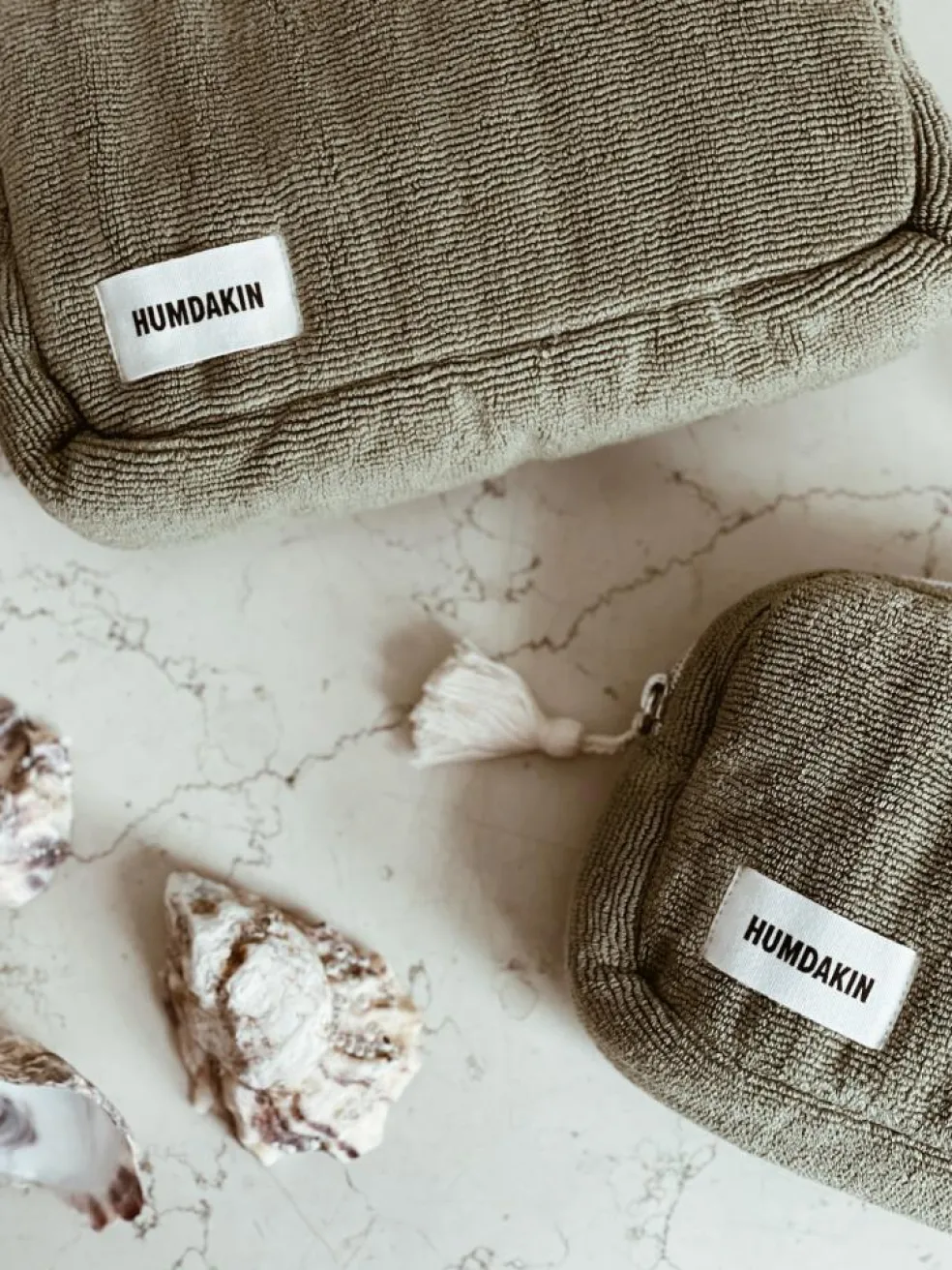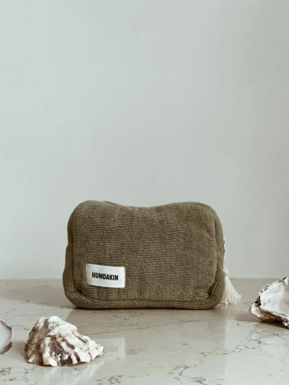 Denne meget brugbare og luksuriøse toilettaske lavet i økologisk bomuldsfroté er perfekt til dine pleje produkter.
