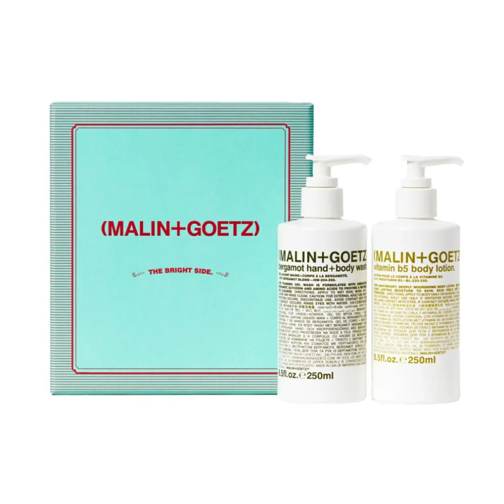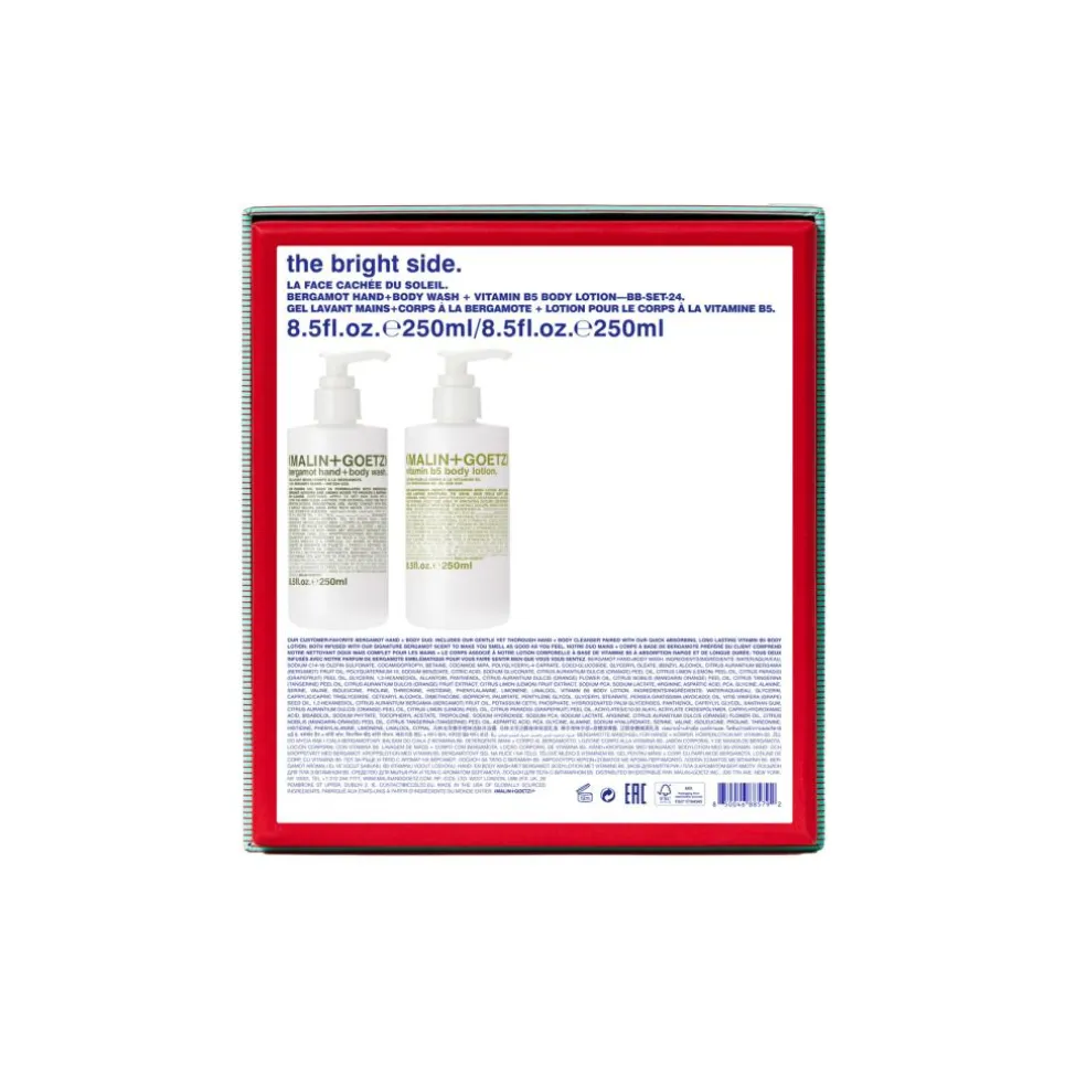 Sættet inkluderer: Bergamot hand + body wash. 250ml. Vitamin B5 body lotion. 250ml.