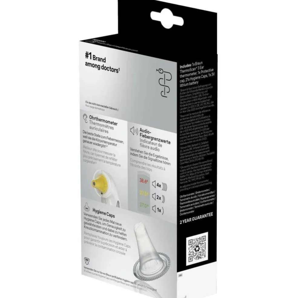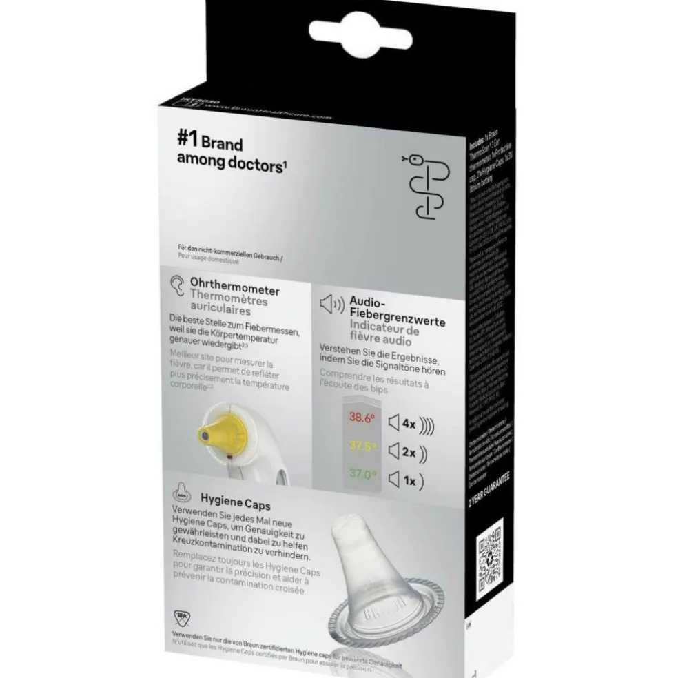 Dette termometer er pålideligt og brugervenligt, og på blot 1 sekund får man en præcis temperaturmåling. Termometeret måler den infrarøde varme, der genereres af trommehinden samt det omgivende væv med klinisk bevist præcision. Med audio feber indikatoren kan man nemt bedømme temperaturen, da antallet af bip indikerer normal (1 bip), forhøjet (2 bip), høj temperatur (4 bip). Spidsen passer også til nyfødte børns ører.
