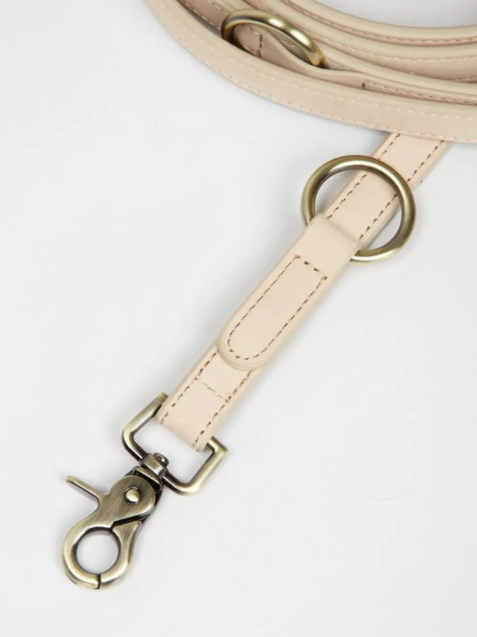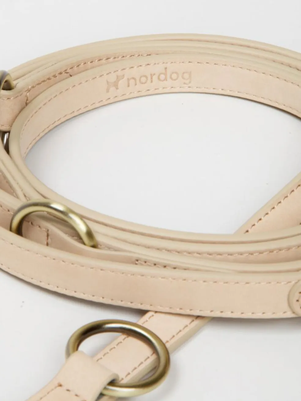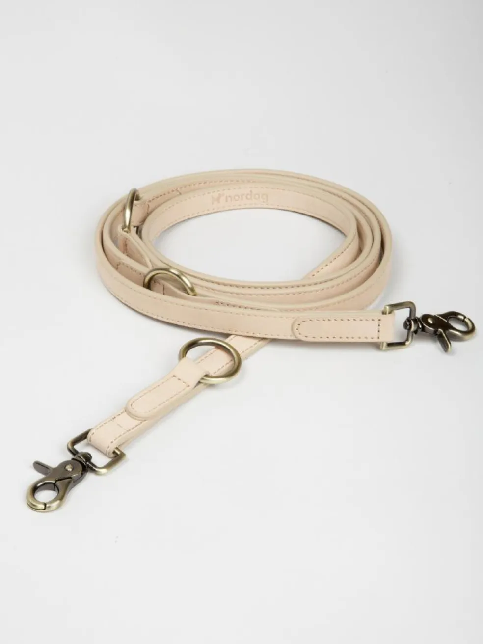 Thomas Hundeline fra danske Nordog er designet i det fineste italienske nubuck læder. De to spænder samt krogene på linen er af messing med et gyldent twist, der fuldender det eksklusive design. Med Thomas Hundeline får din hund en line i et skandinavisk og ekstremt holdbart design, der holder i flere år.