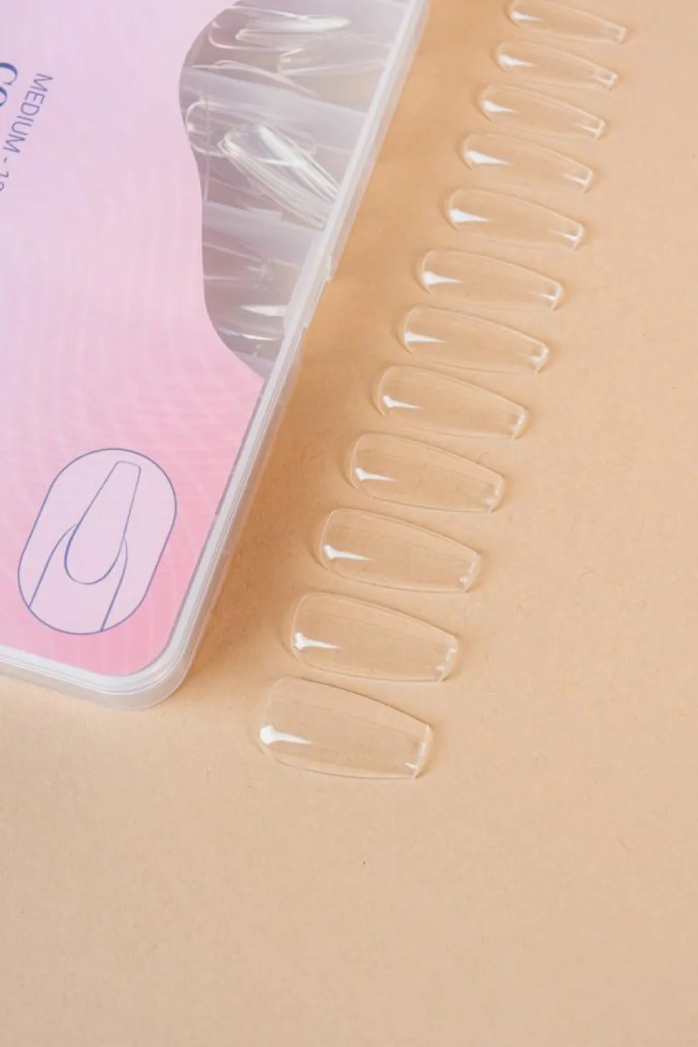 Ballerina klar tip: Kunstige negletipper i naturfarvet tip, formet som en ballerinasko. Tippen er uden false – dvs. At tippen ikke har den rille der normalt er på undersiden. Påføres med Nailster Neglelim. Æsken indeholder 100 stk. Størrelse 0-9 Tip: Buff overfladen af den kunstige negl, inden påførring af gel polish.