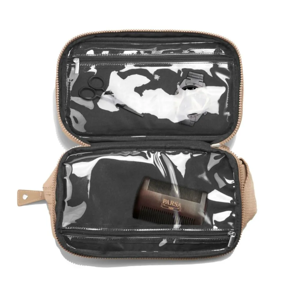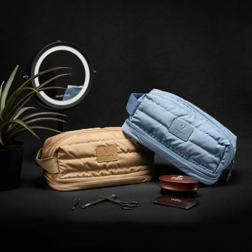 Tasken har et innovativt design med rummeligt hovedrum der åbnes og lukkes med lynlås, og tre indre lommer, der er perfekte til mindre produkter som barbergrej eller plejeartikler.