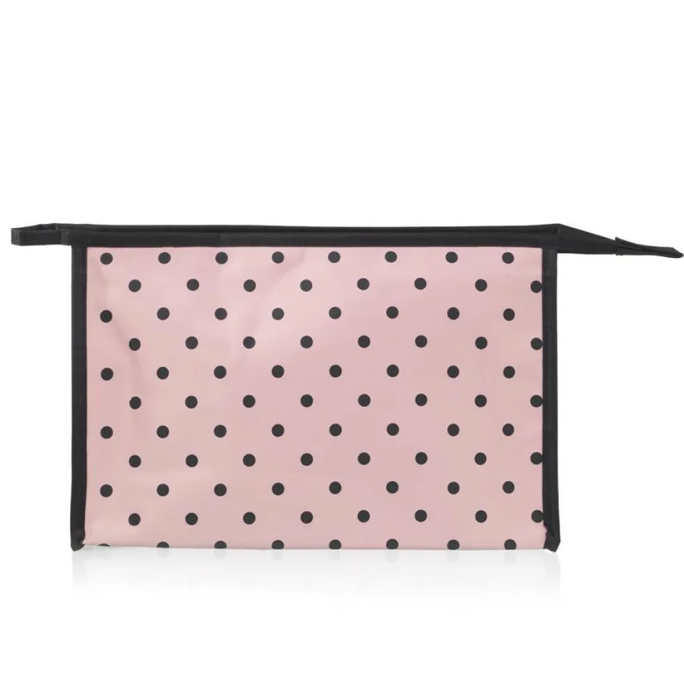 Smart A-formet kosmetiktaske fra Studio. Kosmetiktasken har rosa print med sorte prikker, og et stort lynlås rum med god plads til dine produkter.