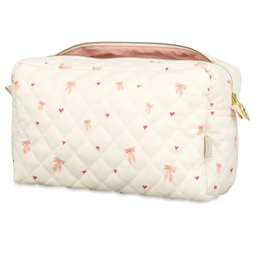 Toilettasken er coated både indeni og udenpå, hvilket beskytter stoffet, og gør den mere vand- og smudsafvisende.