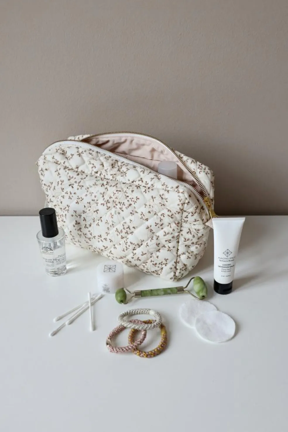 Toilettasken er coated både indeni og udenpå, hvilket beskytter stoffet, og gør den mere vand- og smudsafvisende.