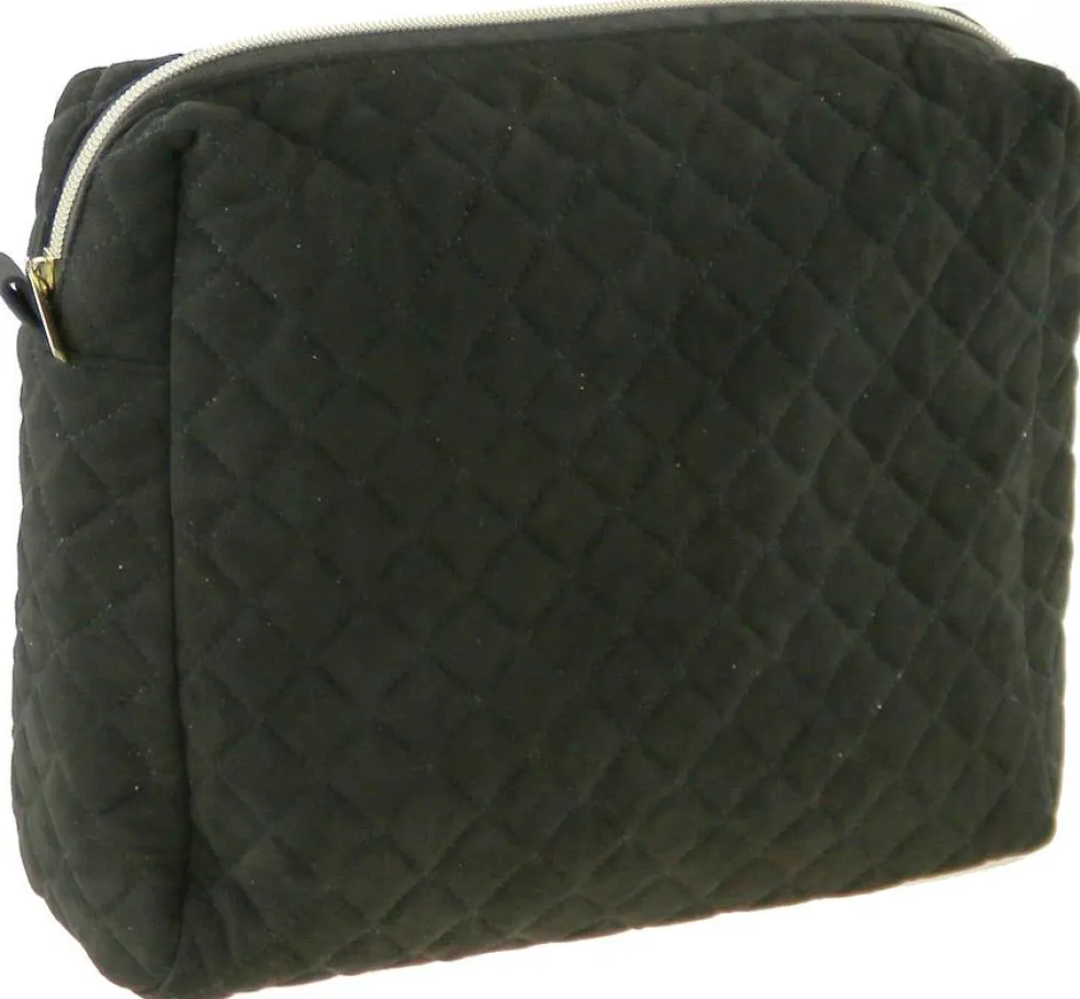 Rummelig toilettaske med en lille invendig lomme med lynlås, samt to åbne lommer. Den kviltede effekt får toilettasken til at føles mindre når den er tom. Ligeledes udvider den sig i takt med at den fyldes op.