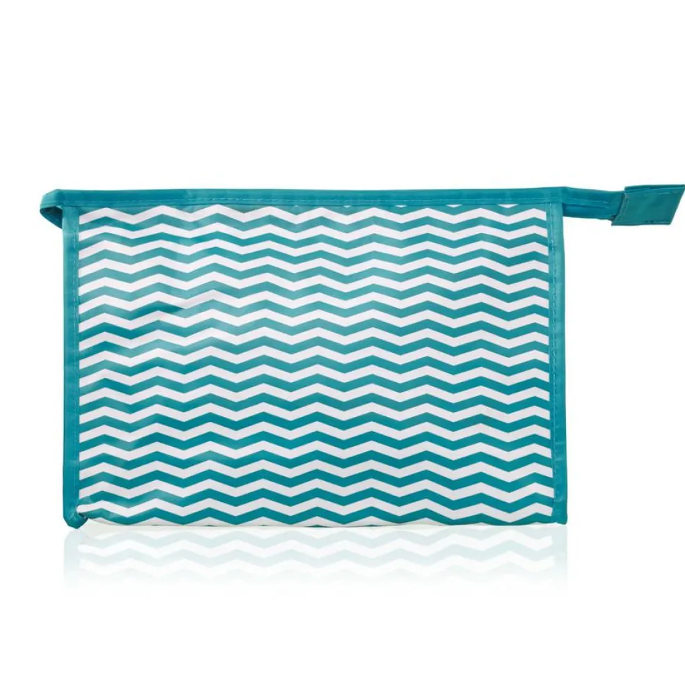 Smart A-formet kosmetiktaske fra Studio. Kosmetiktasken har chevron print i hvid og blå, og et stort lynlås rum med god plads til dine produkter.