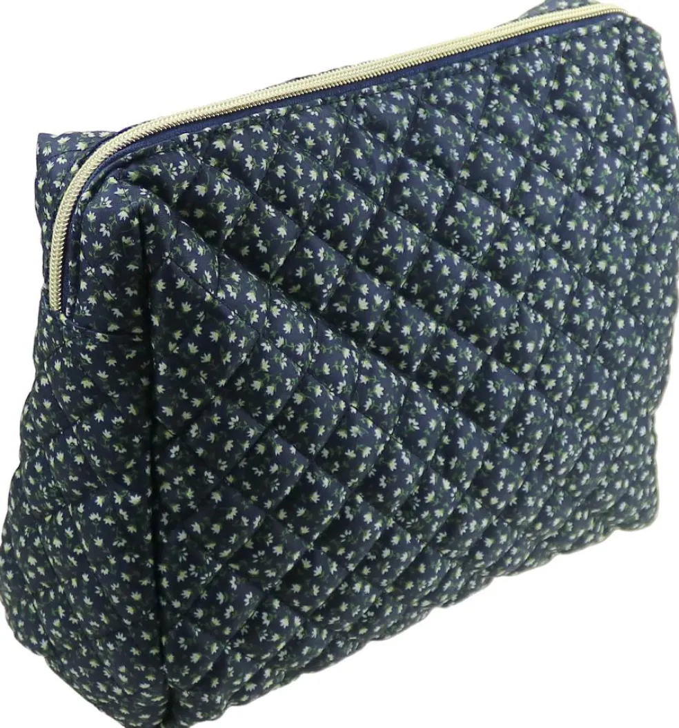 Opbevar dine skønhedsprodukter, toiletartikler og små nødvendigheder med stil! Denne store toilettaske med smukt navy-blomsterprint kombinerer funktionalitet med et feminint og tidløst design