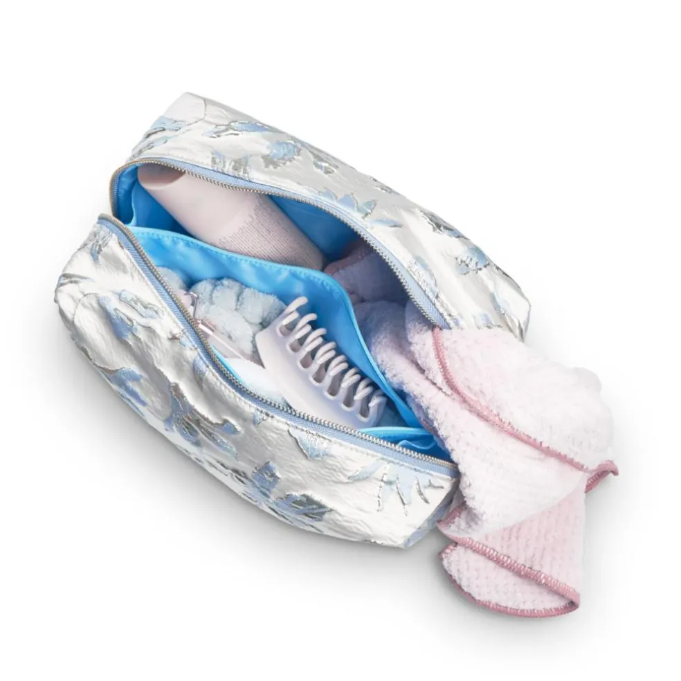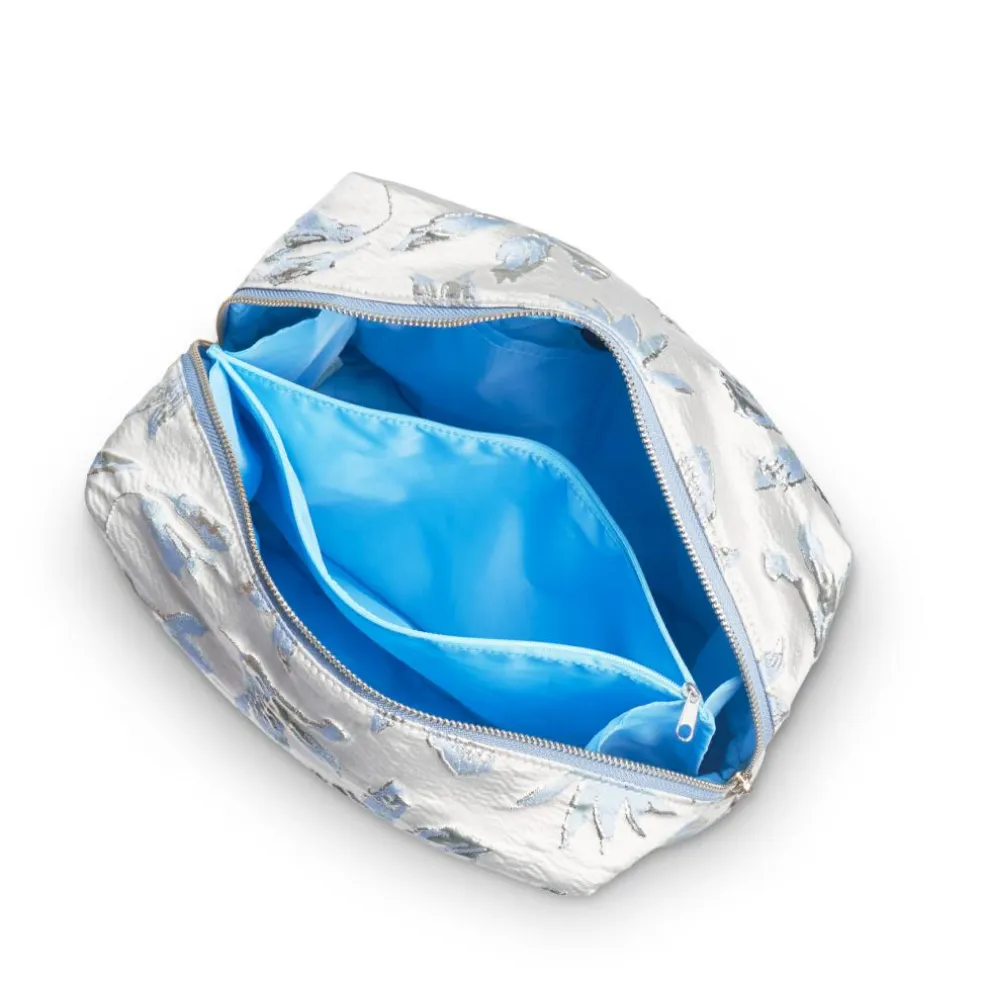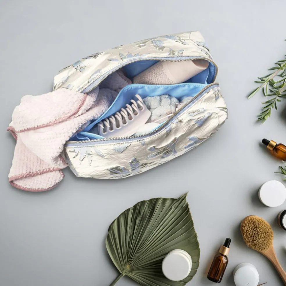 Derudover er toilettaskens fór quiltet for at give ekstra beskyttelse til dine dyre plejeprodukter. Toilettasken er fremstillet af smuk brokade.