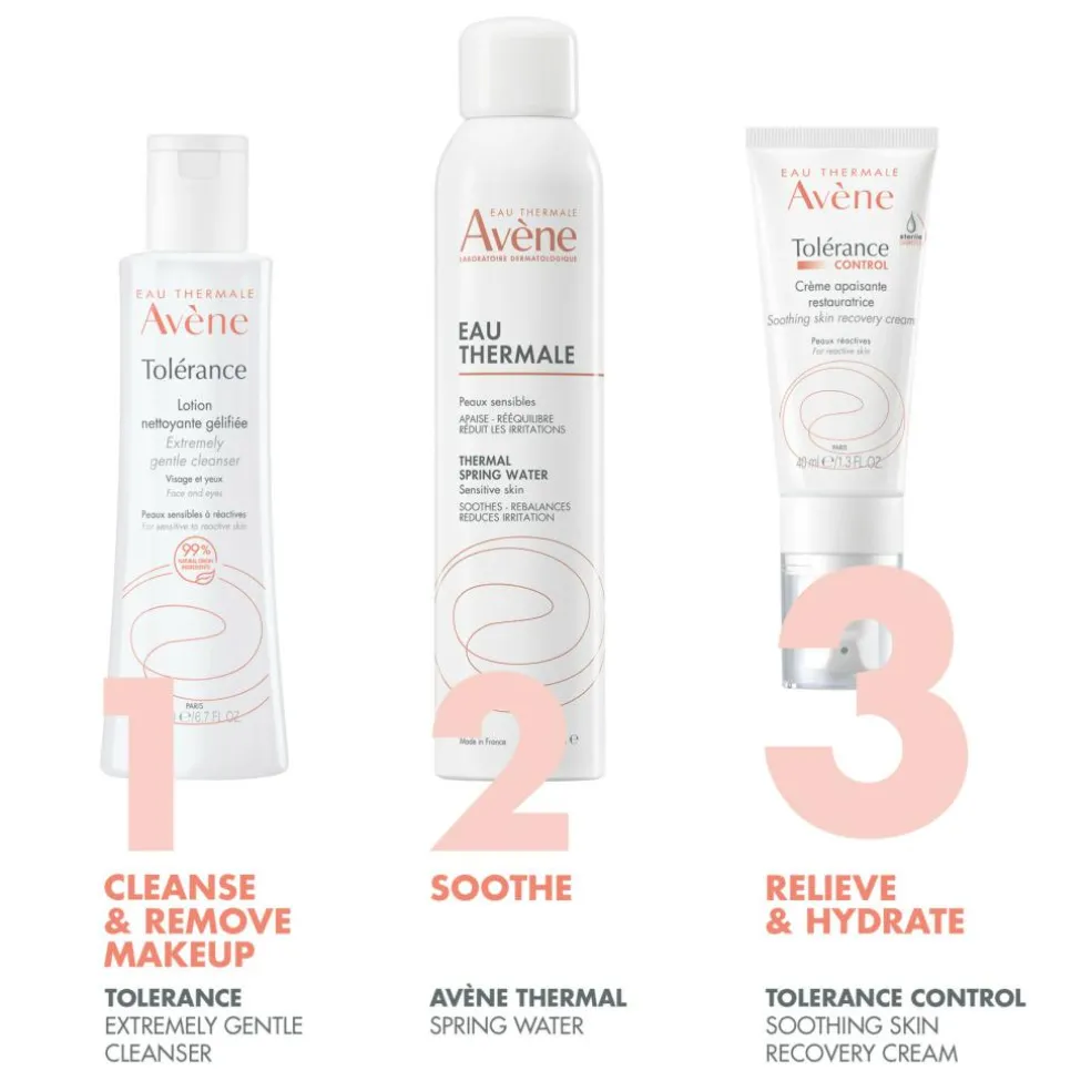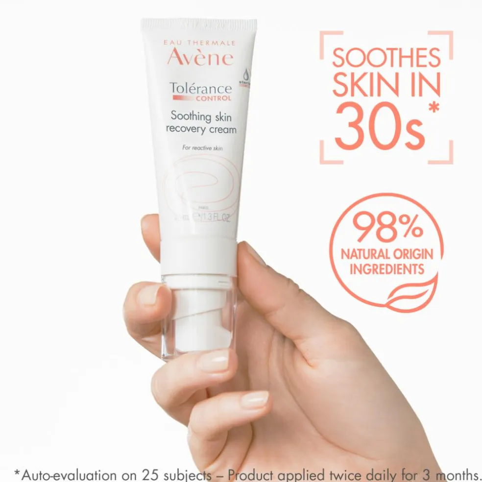 Avène Tolérance Control Soothing Skin Recovery Face Cream er en beroligende ansigtscreme, udviklet til hypersensitiv, reaktiv, intolerant eller allergisk hud. Cremen hjælper med at reducere ubehag, såsom varmefornemmelse, prikken og stramhed, samtidig med at den tilfører intensiv fugt og styrker hudbarrieren.