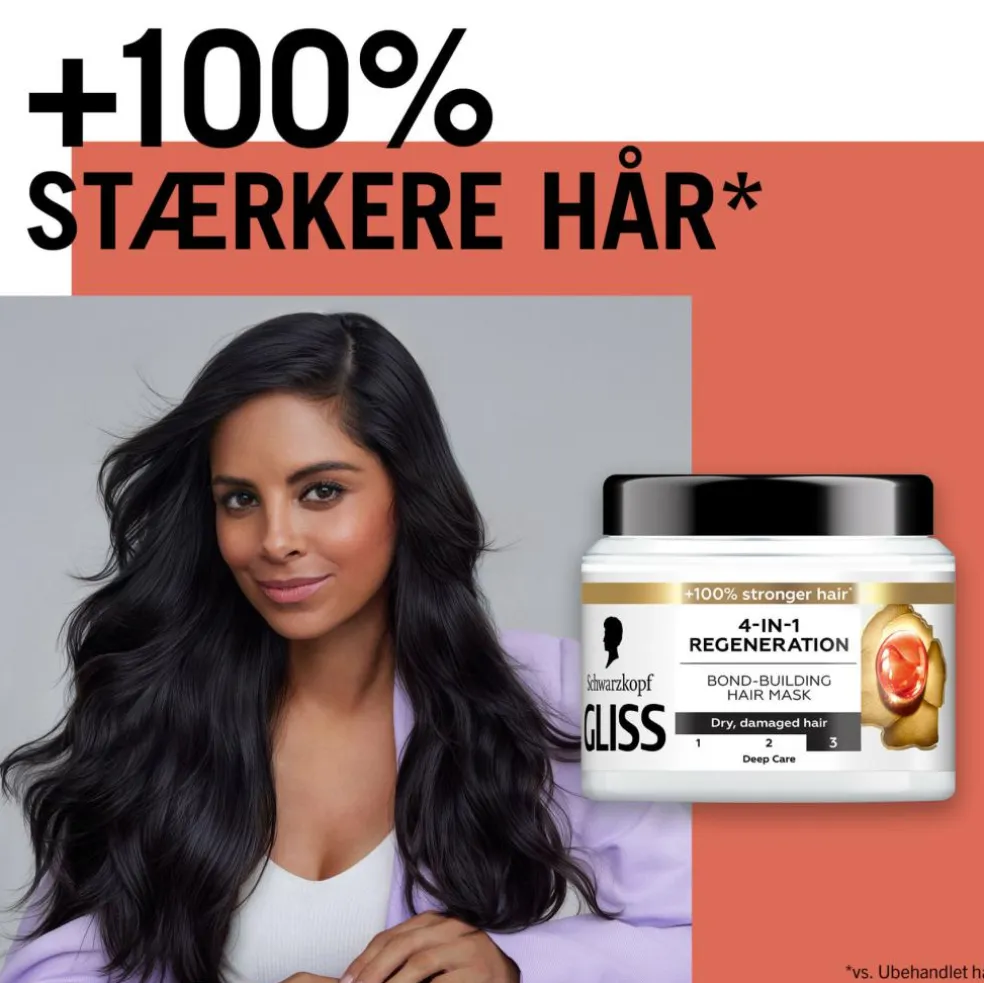 Håret er udsat for daglige stressfaktorer. Som følge heraf kan det være tørt, stresset og tilbøjeligt til at knække. Gliss behandlingen genopbygger håret i dybden og har en udglattende effekt på overfladen.