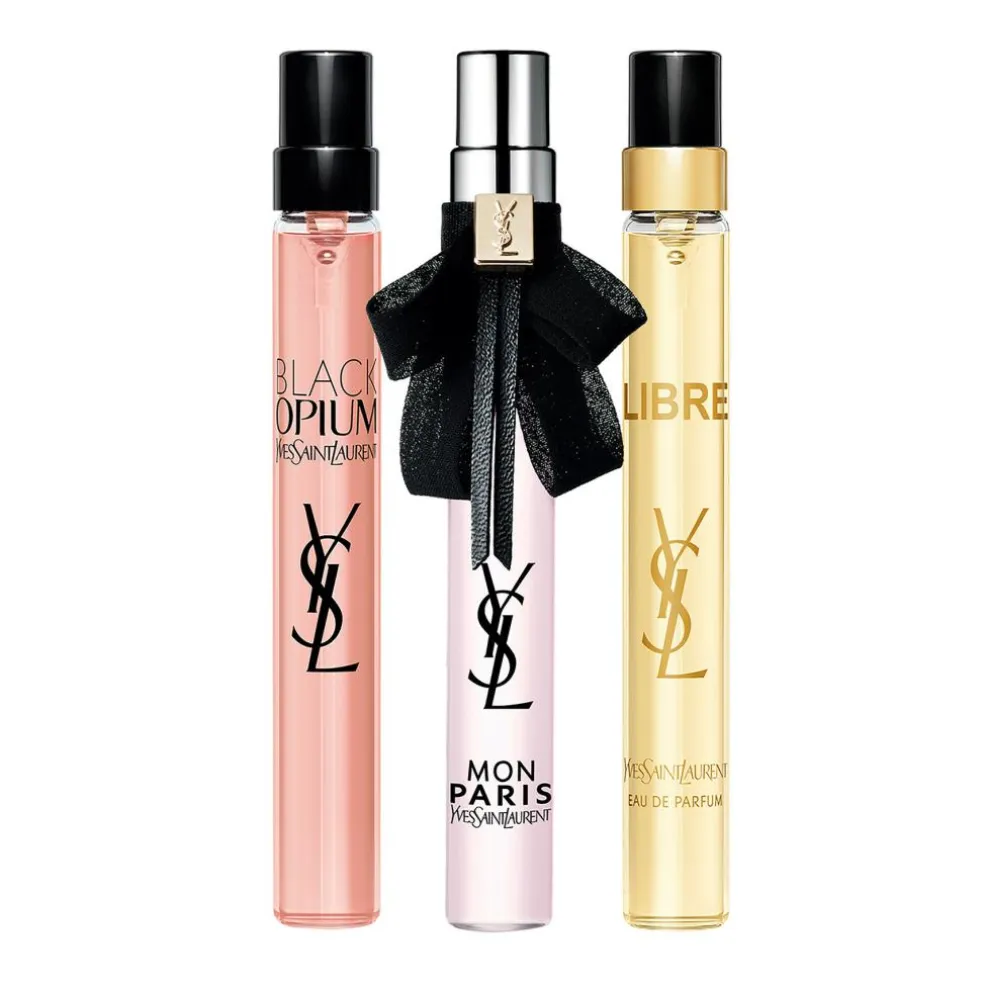Hver Eau de Parfum er fremstillet af duftolier og essenser af høj kvalitet, der kombinerer blomster-, træ- og gourmandnoter for at skabe en afbalanceret, langvarig duft. Black Opium indeholder kaffe, vanilje og hvide blomster; Mon Paris indeholder moskus, patchouli og pigæble, Libre blander lavendel og appelsinblomst til en lysende, moderne aroma.