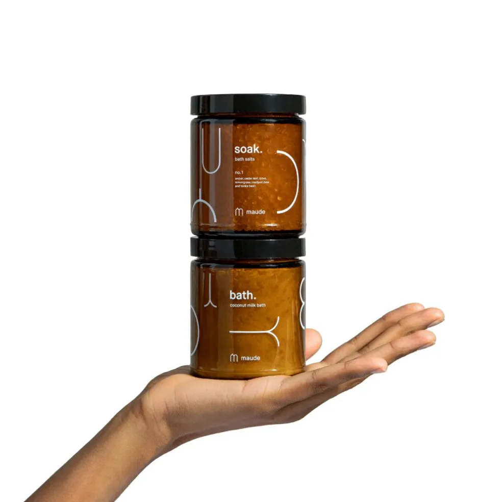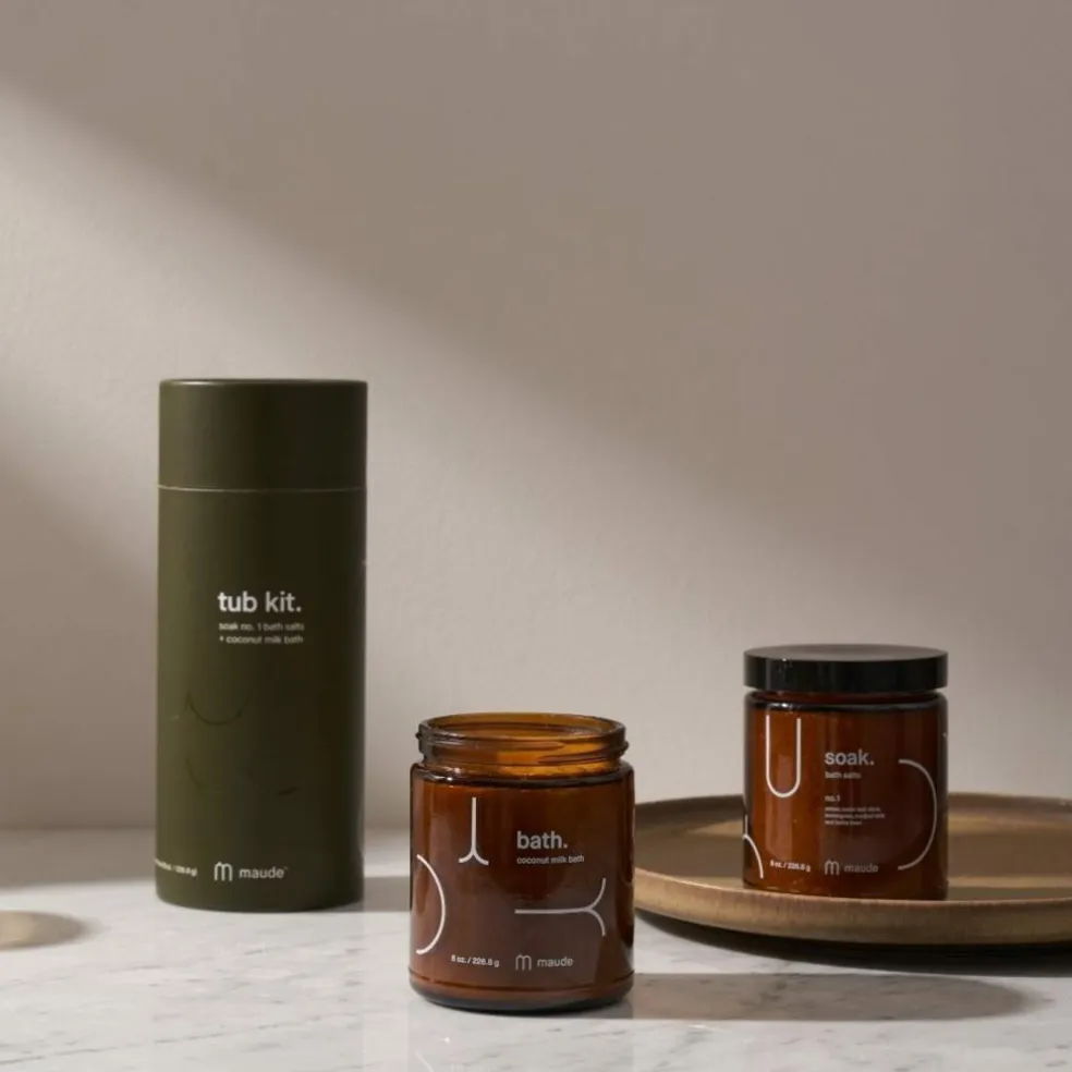 Badekarsættet® har opblødt badesalte i duft nr. 1, og bad, vores kokosmælkbad.