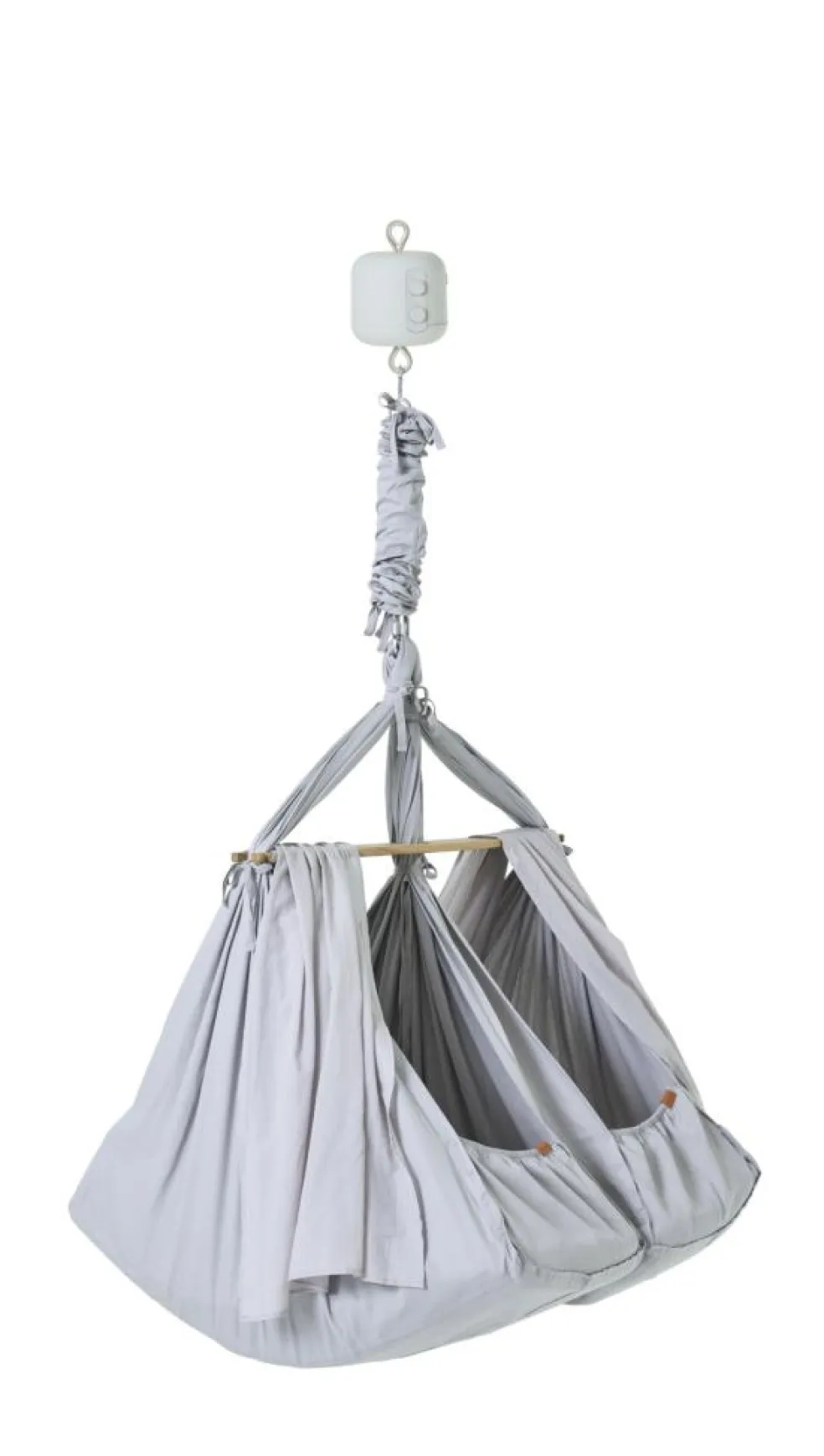 Kombinationen af MEMBANTU slyngevugge og MEMBANTU LeeLo Vuggemotor kan babyer fra 3 kg anvende slyngevuggen.