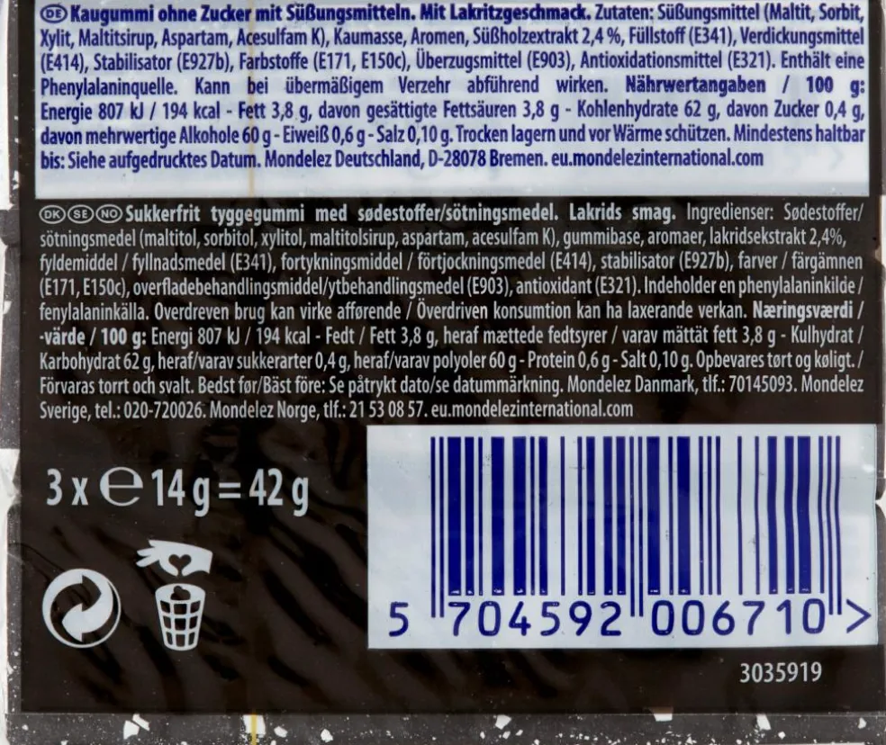 Indeholder sødestoffer. Overdreven brug kan virke afførende. Indeholder en phenylalaninkilde