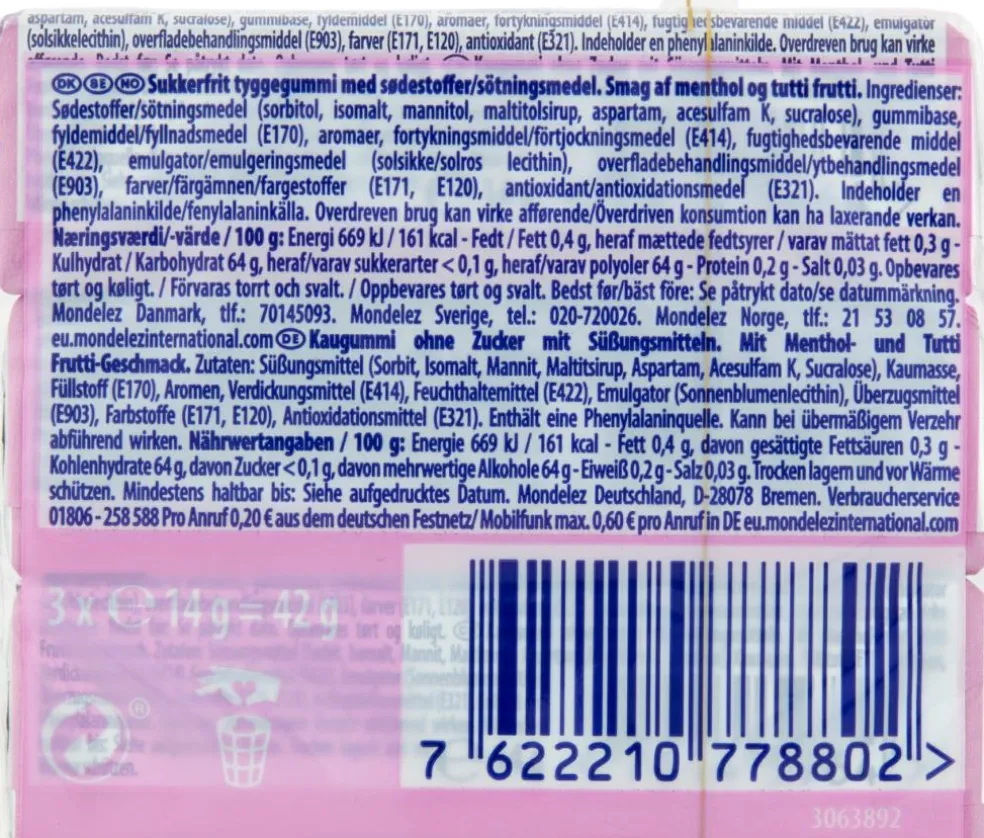 Indeholder sødestoffer. Overdreven brug kan virke afførende. Indeholder en phenylalaninkilde