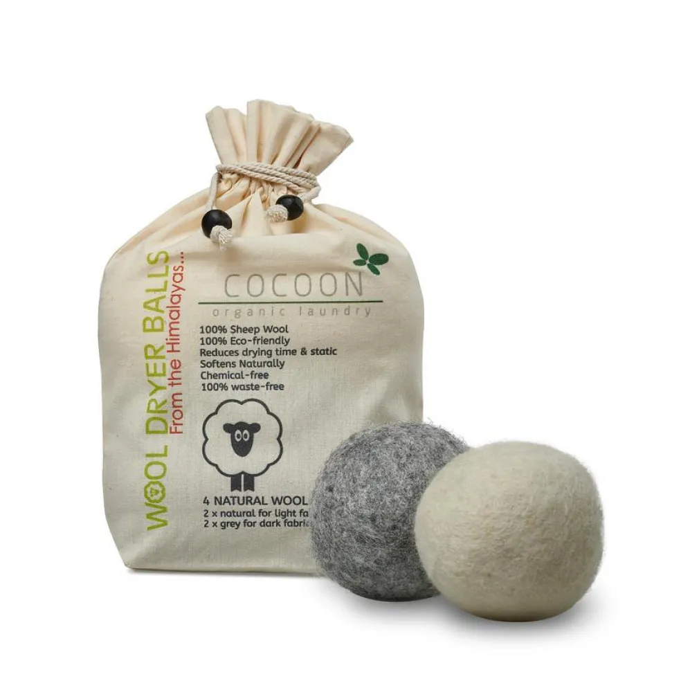 Cocoon uldbolde er naturlige tørrebolde til tørretumbleren, der ved hjælp af uldens stærke fugtabsorberende egenskaber reducerer tørretiden af vasketøjet i tørretumbleren. Ved at bruge uldbolde til tørring af vasketøj kan du dermed reducere tørretiden med op til 25%, hvilket svarer til mellem 10-30 minutters tørretid, og du sparer derved også miljøet for en masse unødig CO2. Da uldboldene konstant er i kontakt med vasketøjet under tørring, hjælper uldboldene også med at blødgøre tøjet, og du kan derfor helt undgå brug af skyllemiddel. Du skåner dermed både miljøet for en masse energi og for de mange miljøskadende kemikalier, der findes i moderne skyllemidler.