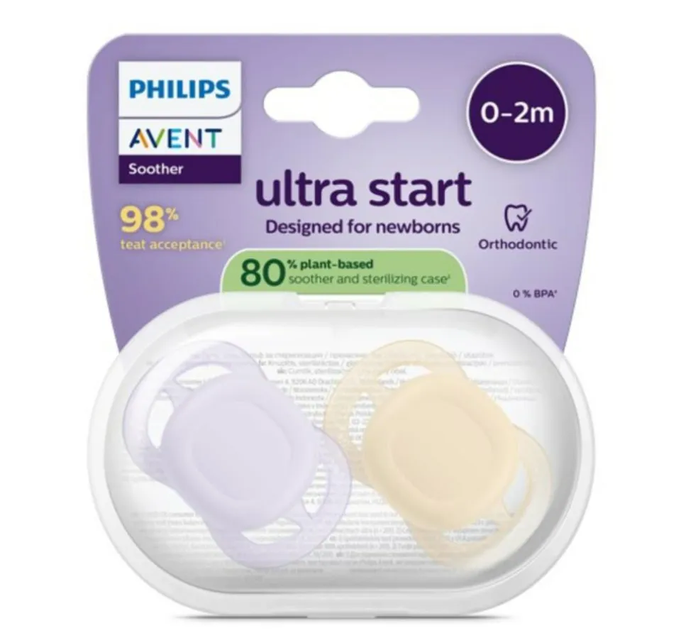 *forbrugertest fra 2023 i USA bekræfter, at 98 % vænnede sig til den teksturerede Philips Avent-sut, der anvendes i vores ultra-sutter (n=201). *
